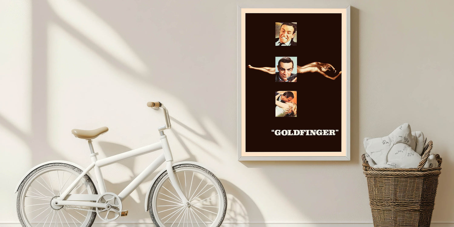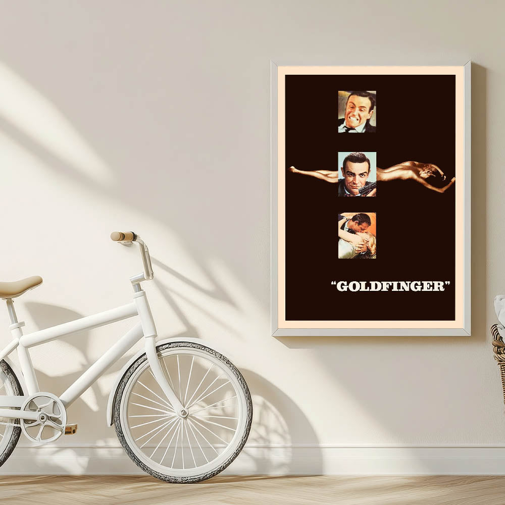 This timeless art piece celebrates the golden era of spy thrillers and Hollywood glamour. Own a piece of cinematic history with this Goldfinger movie poster.