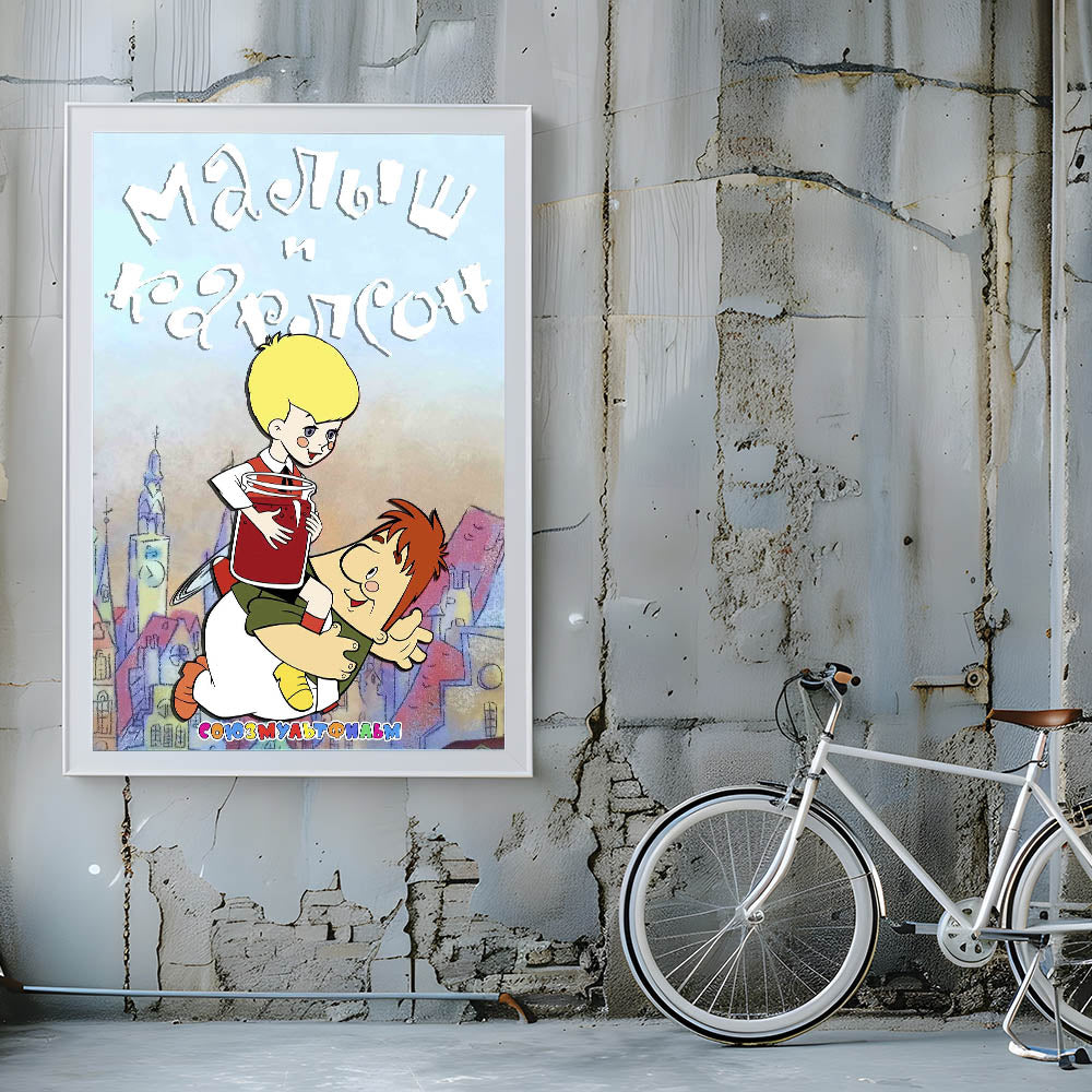 Step into the world of classic 1960s animation with this vintage movie poster from Karlsson-on-the-Roof (1968). This iconic 1960s film poster showcases the beloved Soviet-era animated adaptation of Astrid Lindgren’s classic tale, featuring its charming hand-drawn style and warm pastel colors. A perfect piece of retro cinema art, this authentic 1960s movie print is ideal for fans of nostalgic animation, vintage children’s films, and European cinema history.