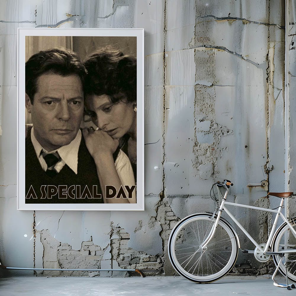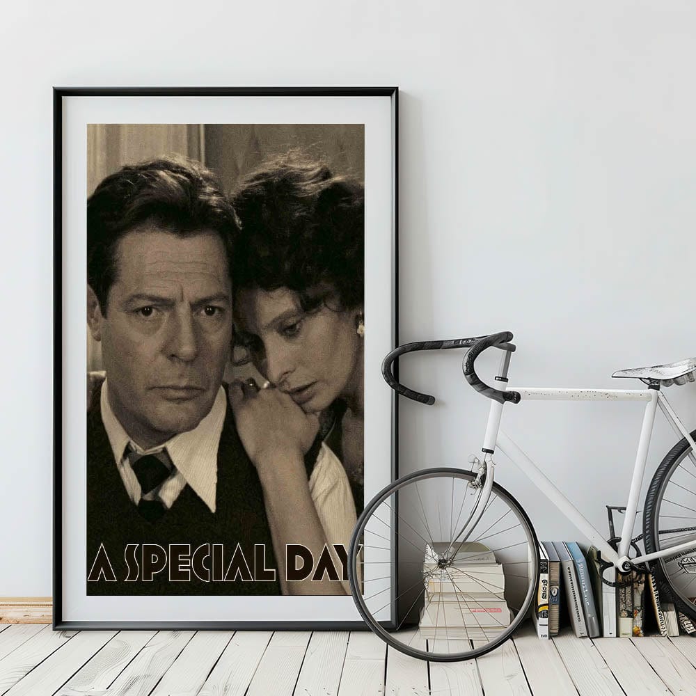 Embrace the emotional depth of authentic 1970s movie poster design with A Special Day, a cinematic masterpiece starring Sophia Loren and Marcello Mastroianni. This vintage cinema art collection captures the melancholic beauty of Ettore Scola’s acclaimed film, making it a must-have for collectors and film enthusiasts. With its sepia-toned imagery and timeless aesthetic, this retro wall art for film enthusiasts is an elegant and thought-provoking piece.