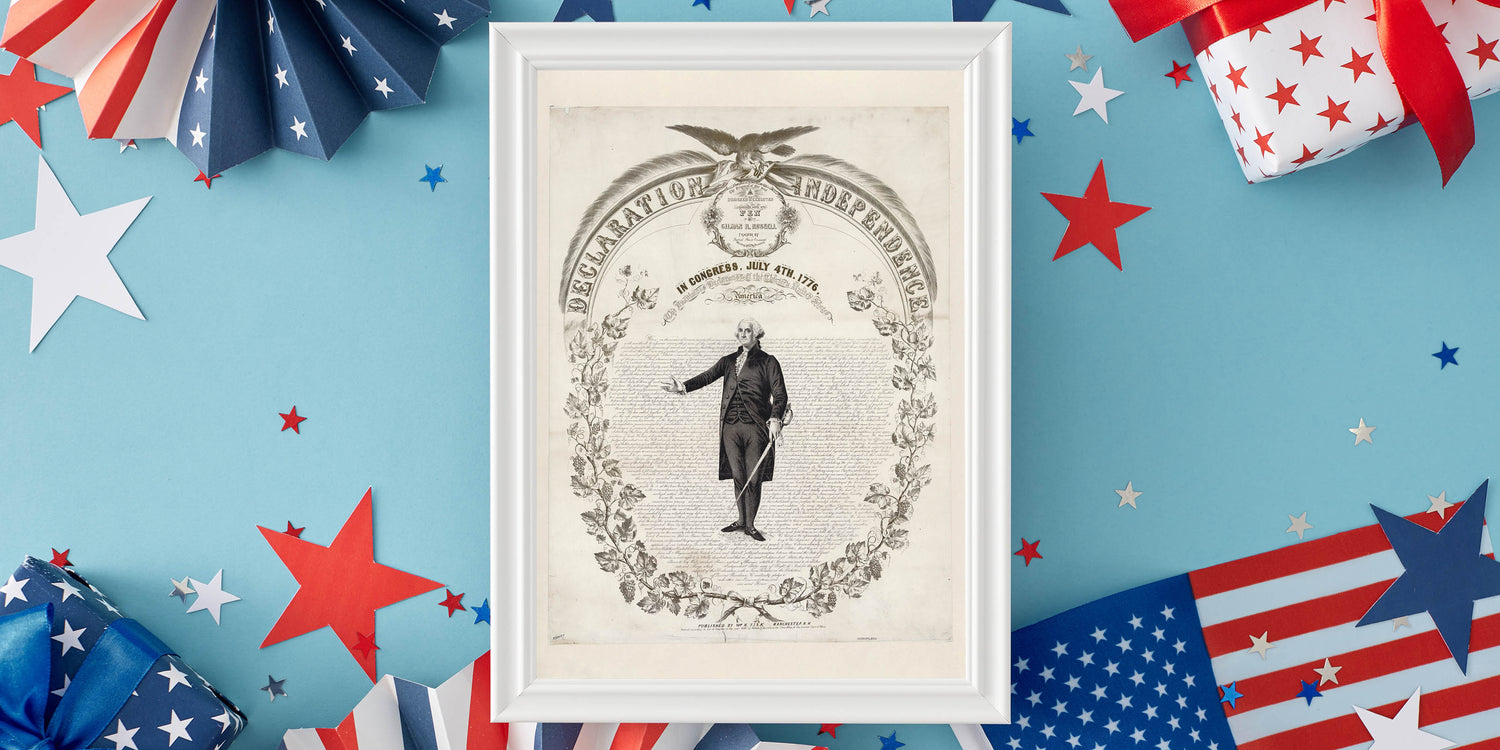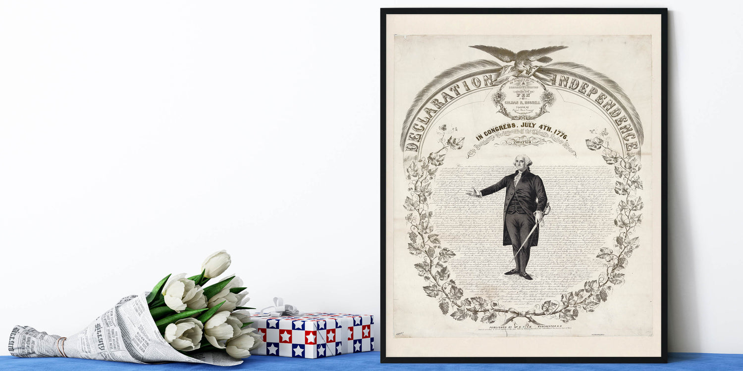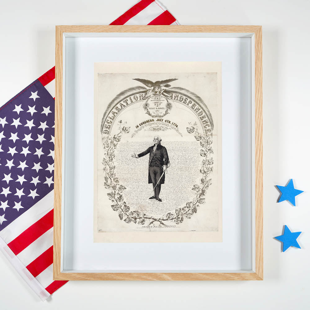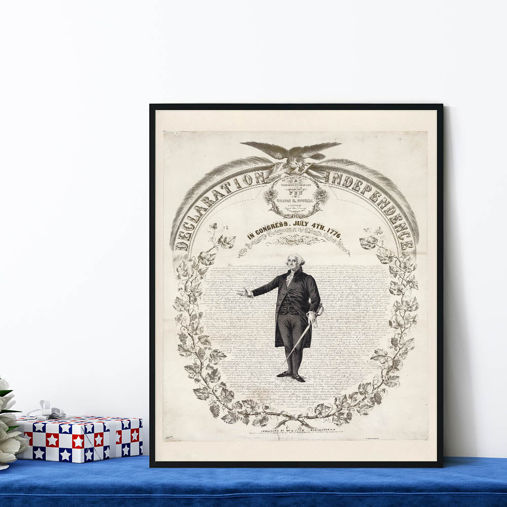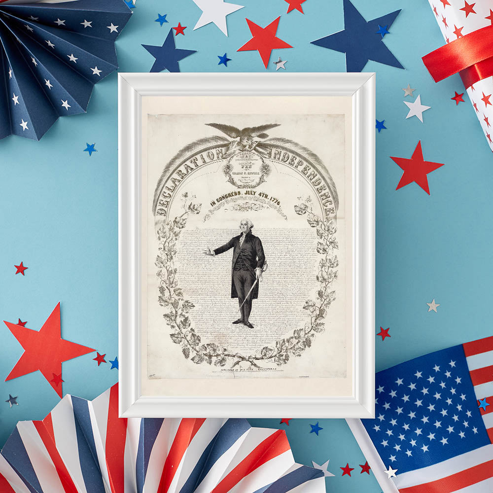 Celebrate the foundation of American freedom with this historic USA wall art, featuring a detailed illustration of the Declaration of Independence. This timeless piece showcases the iconic text, intricate design, and a powerful depiction of George Washington, making it an essential Independence Day art decor piece for history lovers.