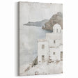 Bring the tranquility of coastal architecture into your space with this minimalist seaside canvas art. Featuring whitewashed buildings against a serene ocean backdrop, this piece captures the peaceful essence of coastal life. The soft palette of whites, grays, and light blues creates a calming atmosphere, ideal for modern and minimalist interiors. Perfect for evoking the feeling of a quiet seaside village, this artwork adds a touch of relaxation and elegance to any room.