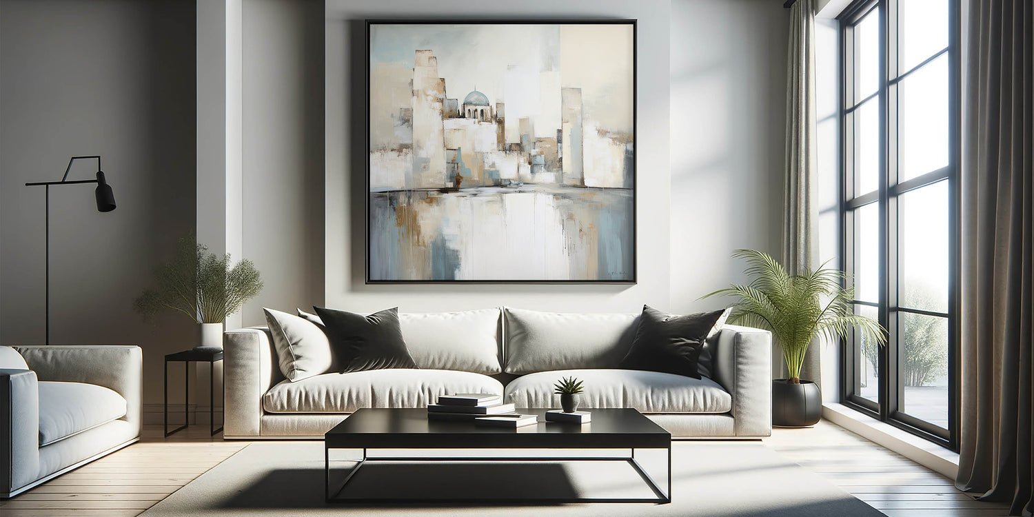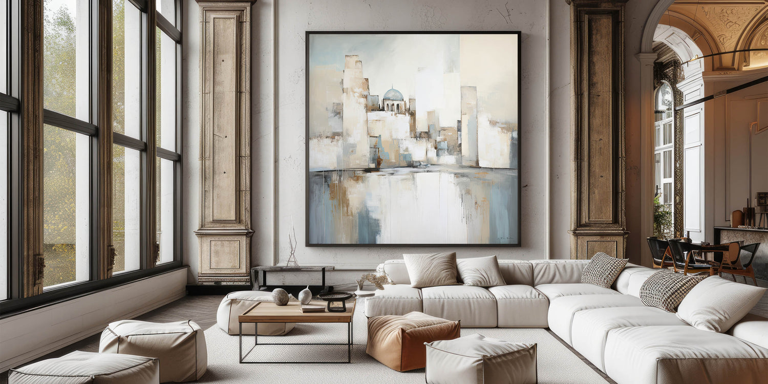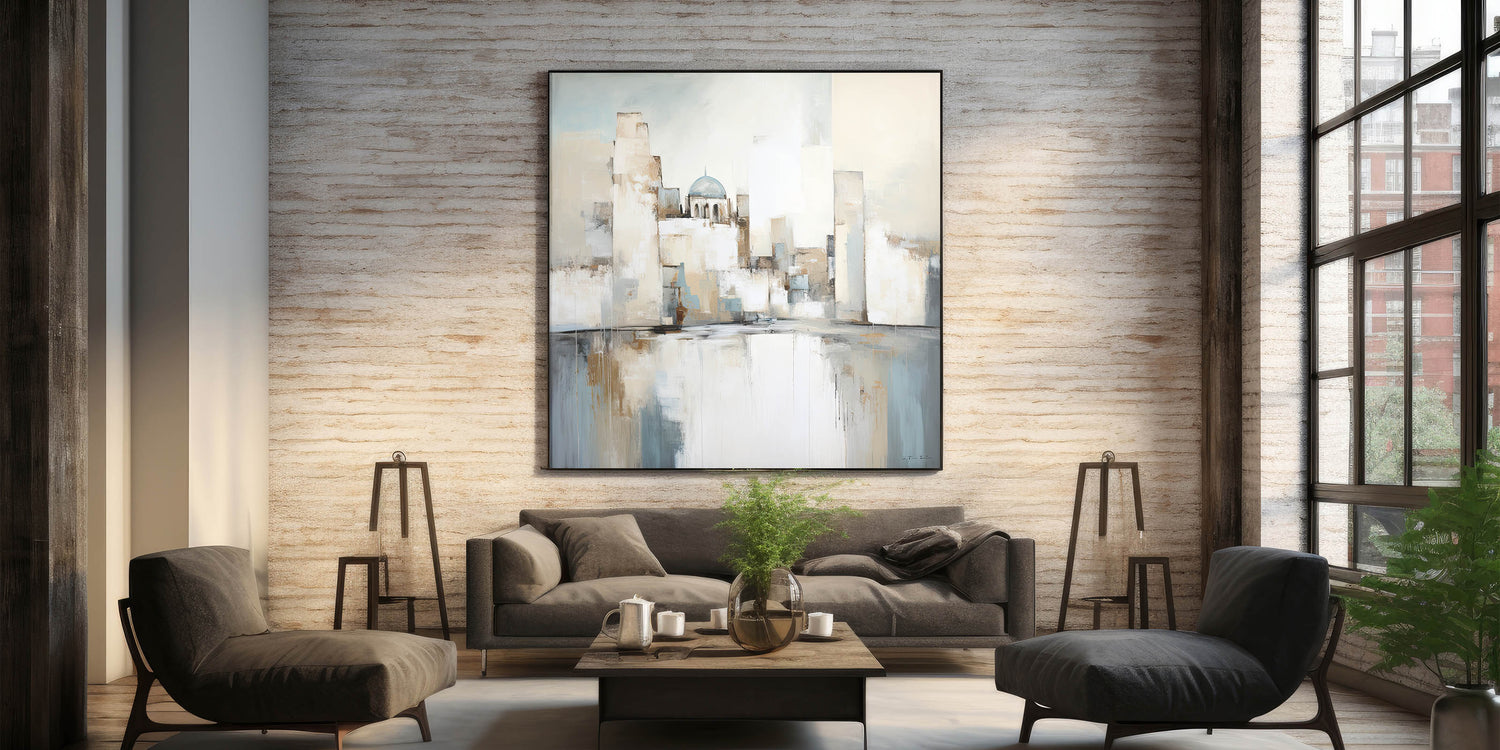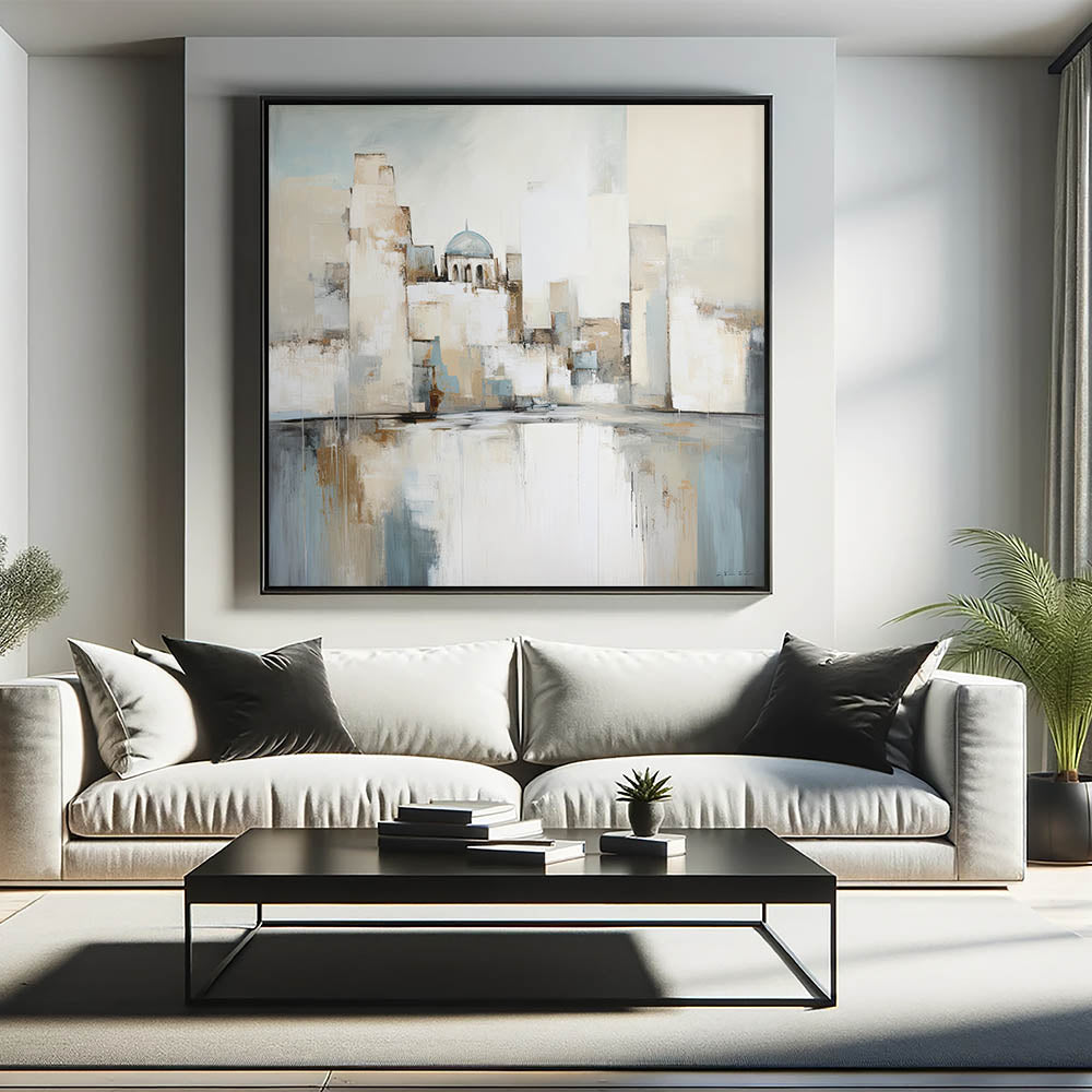 This urban abstract art piece is ideal for anyone seeking contemporary architectural wall art that radiates tranquility and sophistication. With its balanced color palette and captivating geometric forms, it’s a stunning addition as a standalone piece or as part of a gallery wall to elevate your decor.