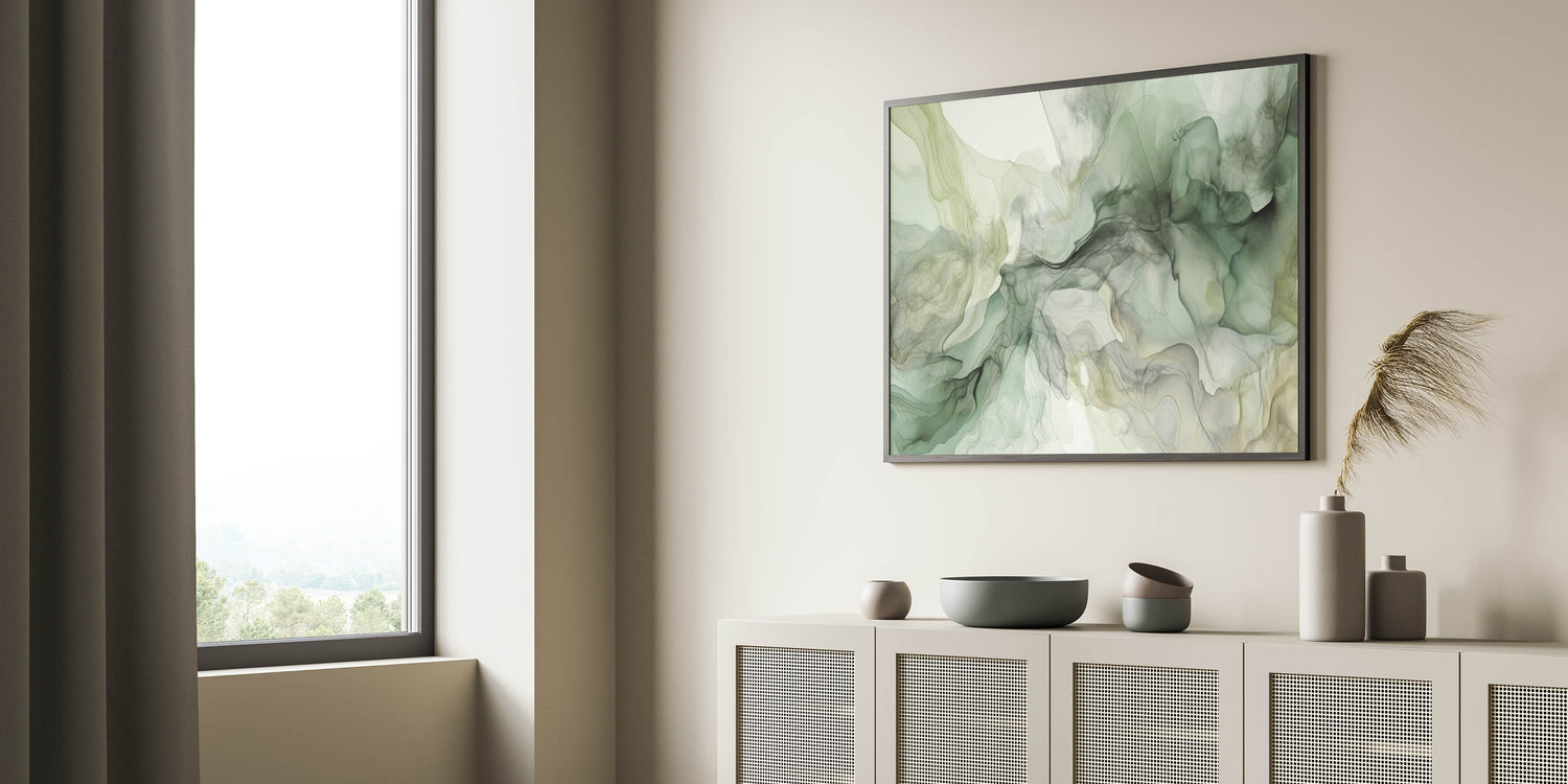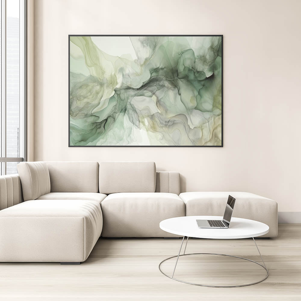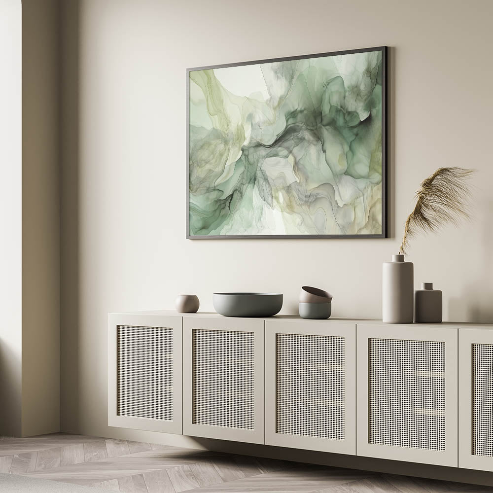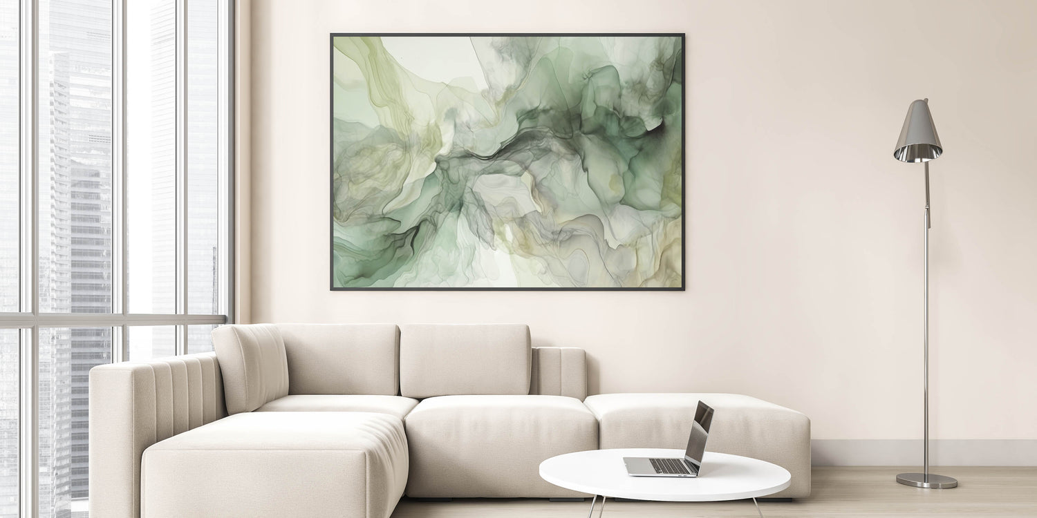 Experience the calming beauty of Fluid Green Abstract Line Art. This exquisite piece showcases a harmonious blend of green, beige, and soft white tones, with flowing, organic patterns that evoke the serenity of nature. The translucent, swirling layers give a sense of depth and movement, making it perfect for those looking to add a touch of tranquility to their decor.
