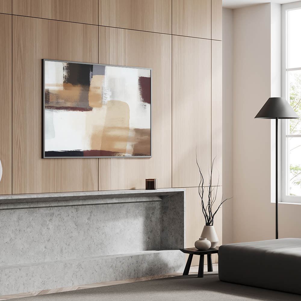 This captivating wall art piece showcases dynamic strokes and lines in a harmonious blend of earth tones, creating a stunning geometric line art design. The abstract brush strokes evoke a sense of movement and fluidity, making it an ideal choice for those seeking a modern and contemporary line art print.
