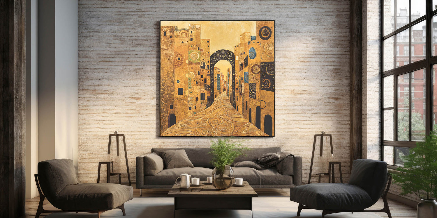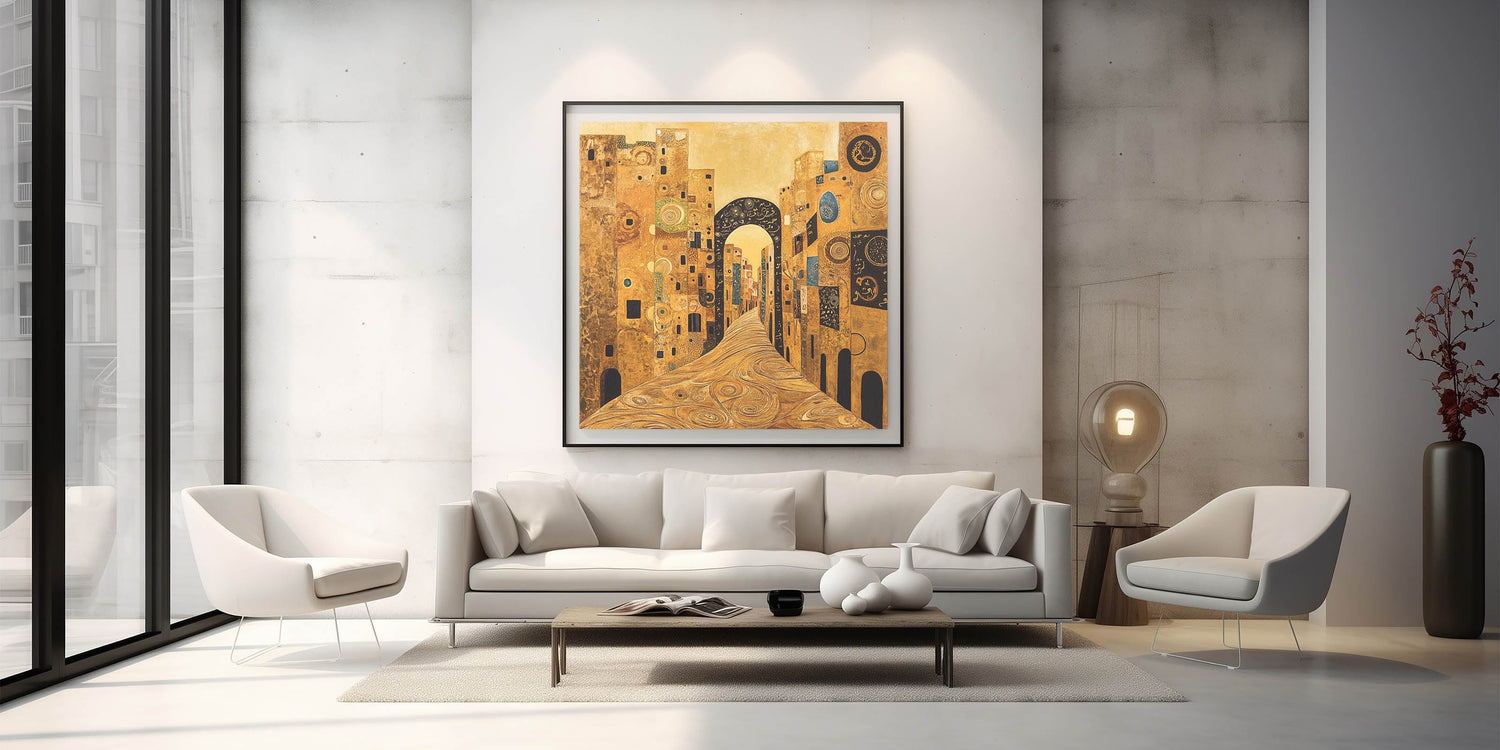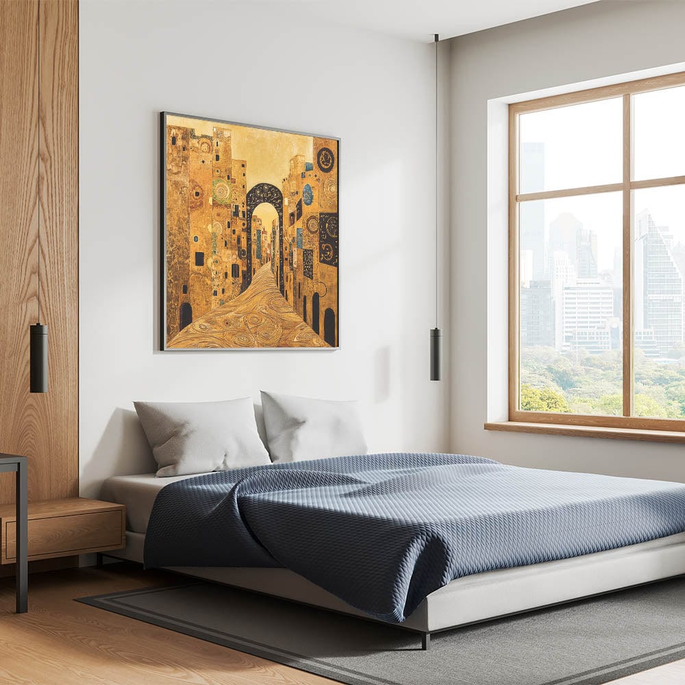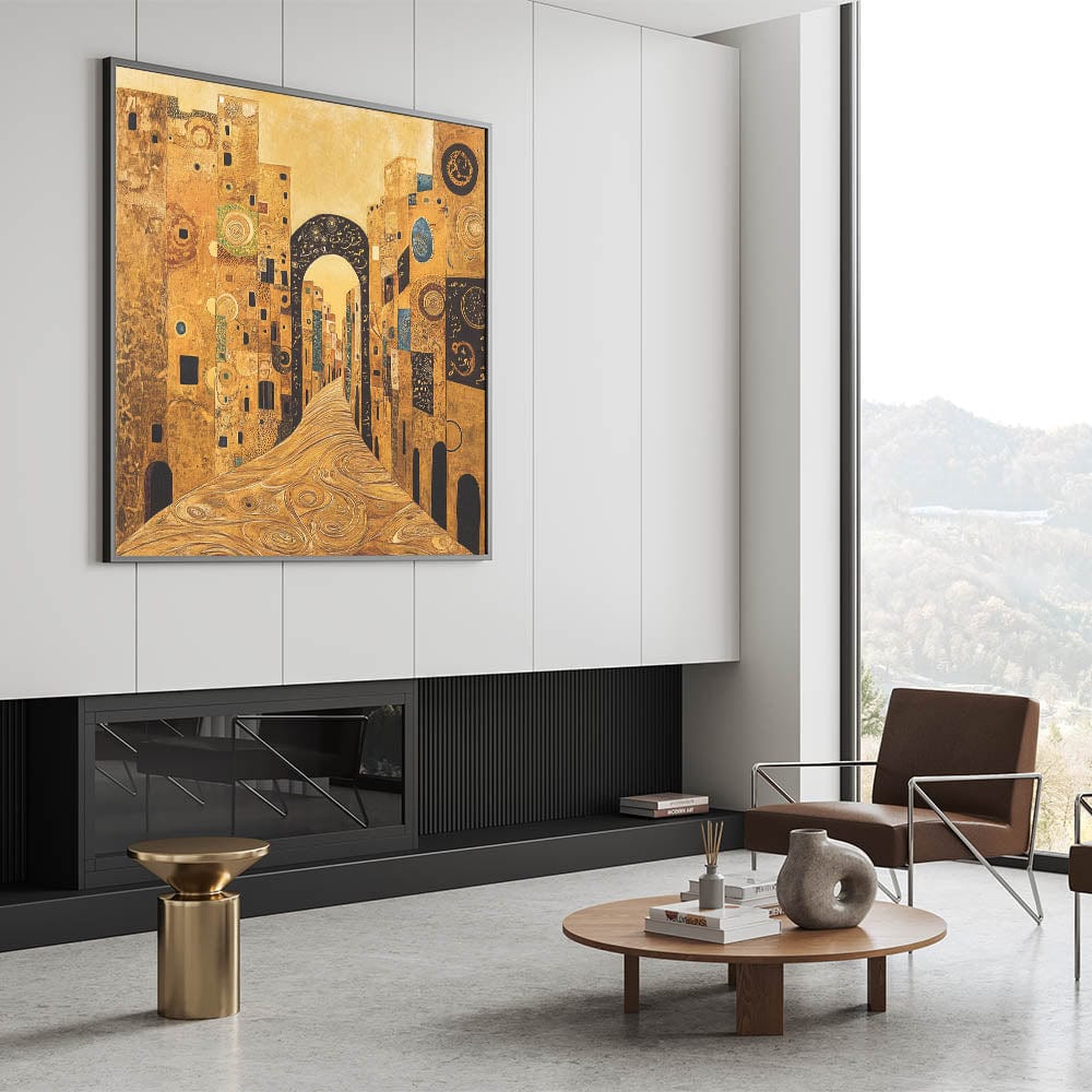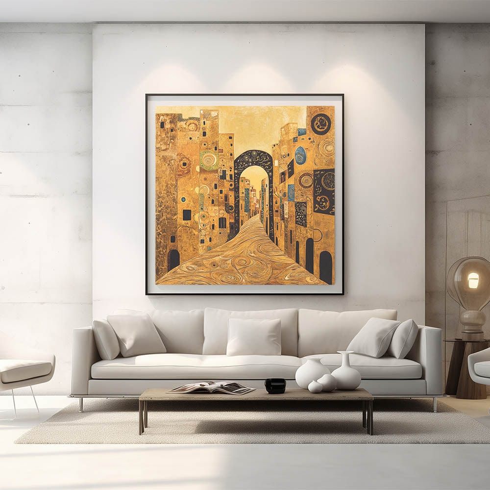 Golden Abstract Architectural Wall Art – Modern Cityscape Print