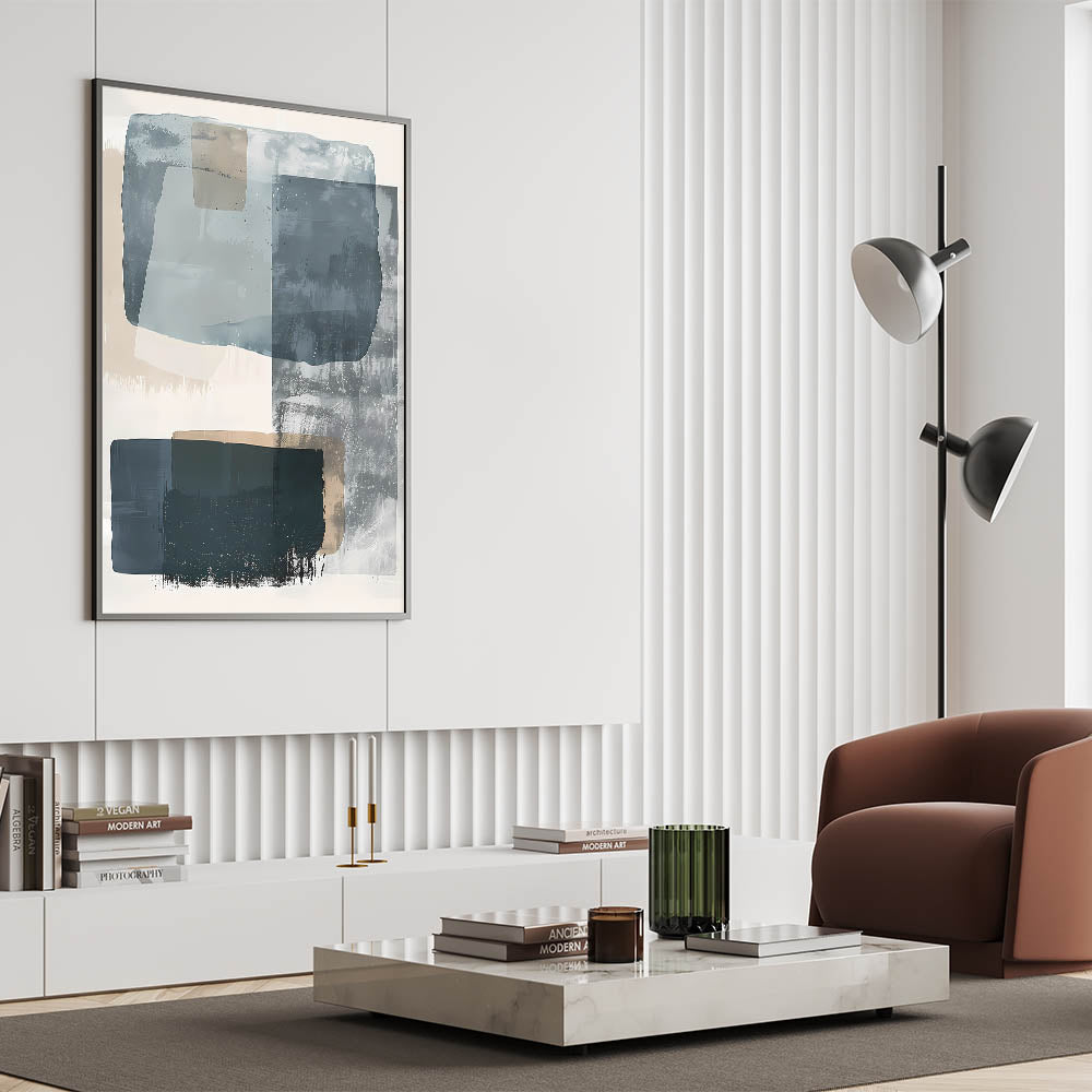 Minimalist Abstract Art in Cool Blue Tones - Modern Wall Decor