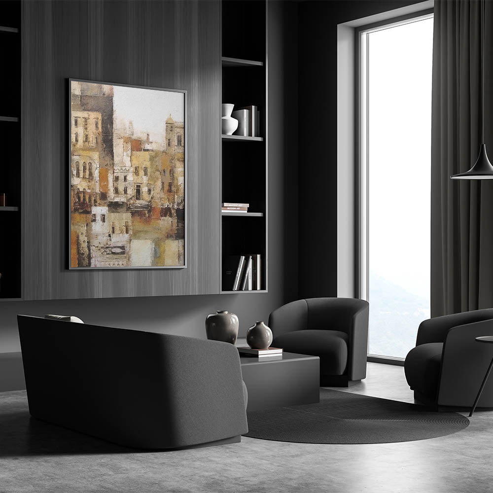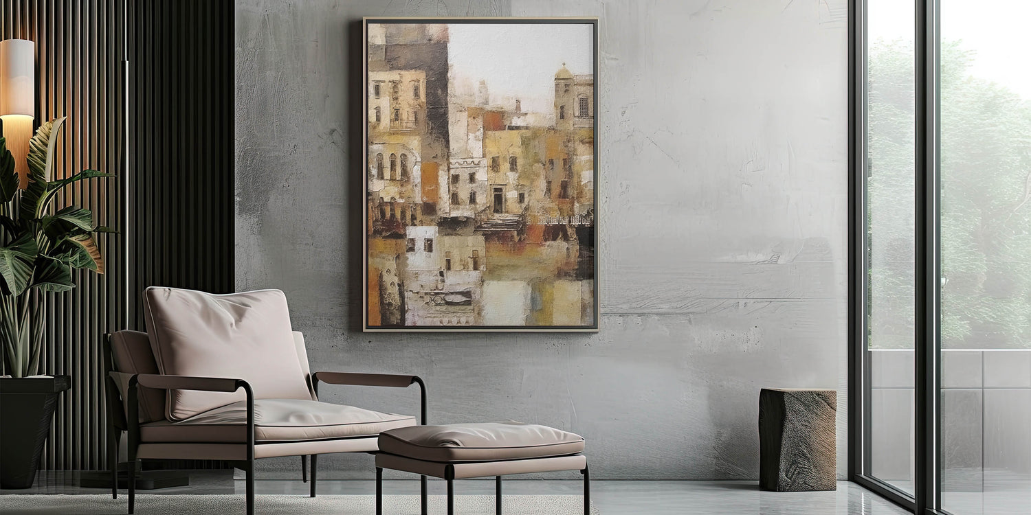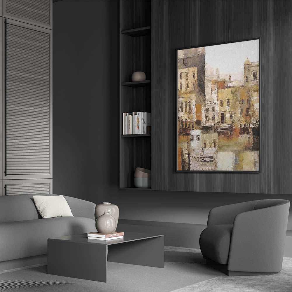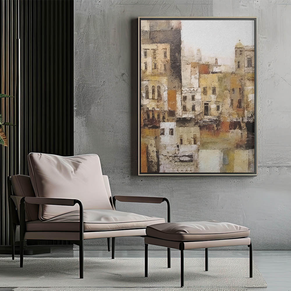Ideal for living rooms, studies, or hallways, this abstract cityscape art piece brings sophistication and historical depth to any interior. Its timeless design and earthy palette make it a versatile addition to both modern and traditional decor.