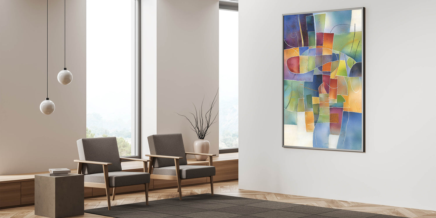Vibrant Abstract Geometric Wall Art - Multicolor Shapes and Textures