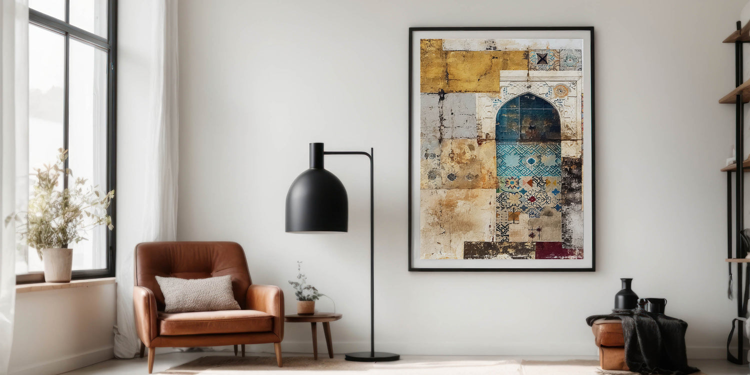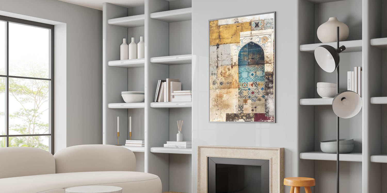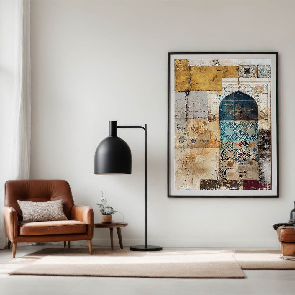 Infuse your space with charm and heritage with this vintage mosaic abstract architecture canvas. Featuring intricate mosaic patterns in hues of beige, teal, and gold, this artwork embodies the timeless beauty of classical architecture. The fusion of textures and colors makes it an ideal piece for those who appreciate unique, artistic décor.