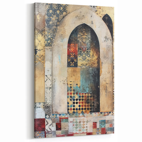 • Abstract architectural wall art on stretched canvas, showcasing geometric shapes and vibrant colors in a modern design. Perfect for contemporary home decor.