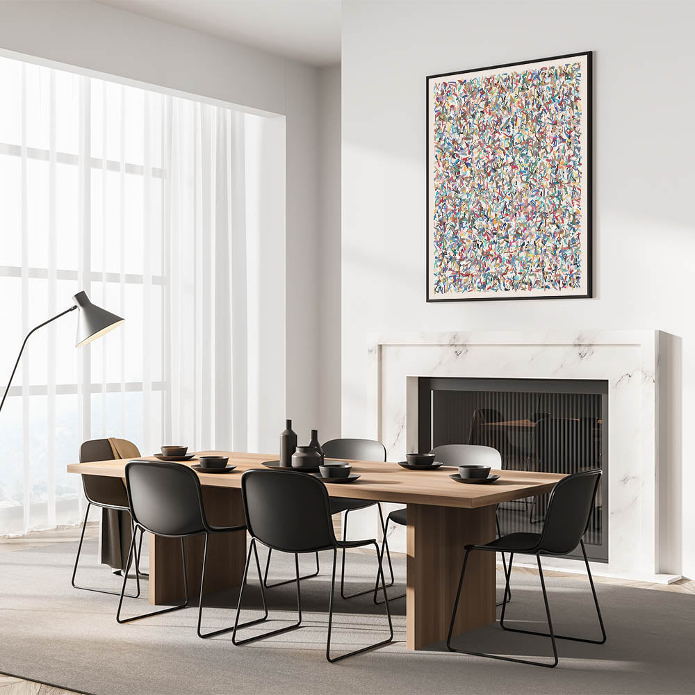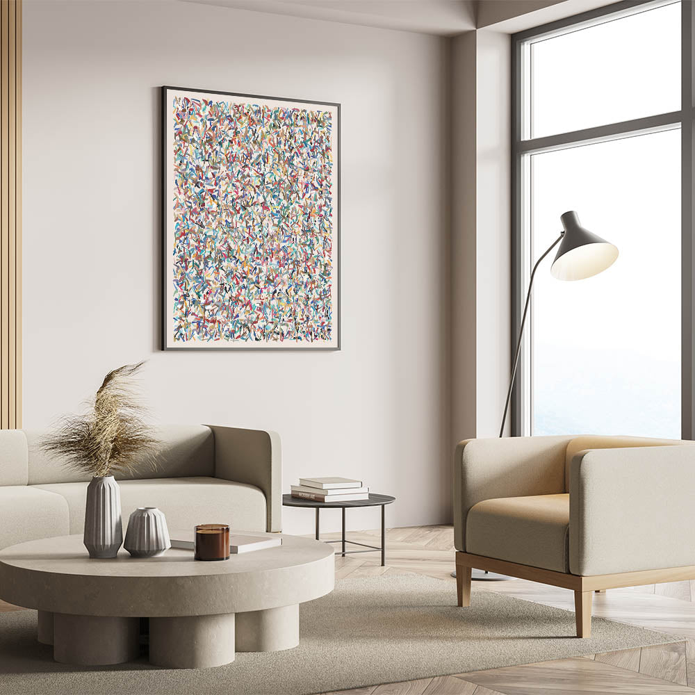 Transform your space with this unique abstract spots art that seamlessly combines creativity and vibrancy. This piece is perfect for those who appreciate modern art and want to make a bold statement with their wall decor.