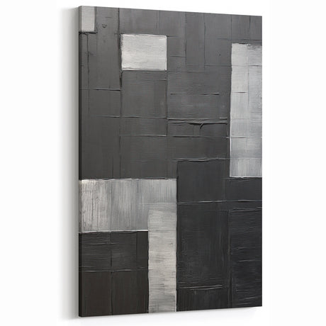 • Abstract architectural wall art on stretched canvas, showcasing geometric shapes and vibrant colors in a modern design. Perfect for contemporary home decor.