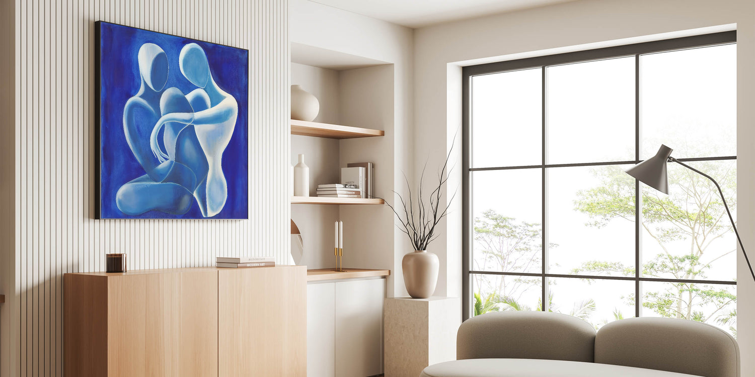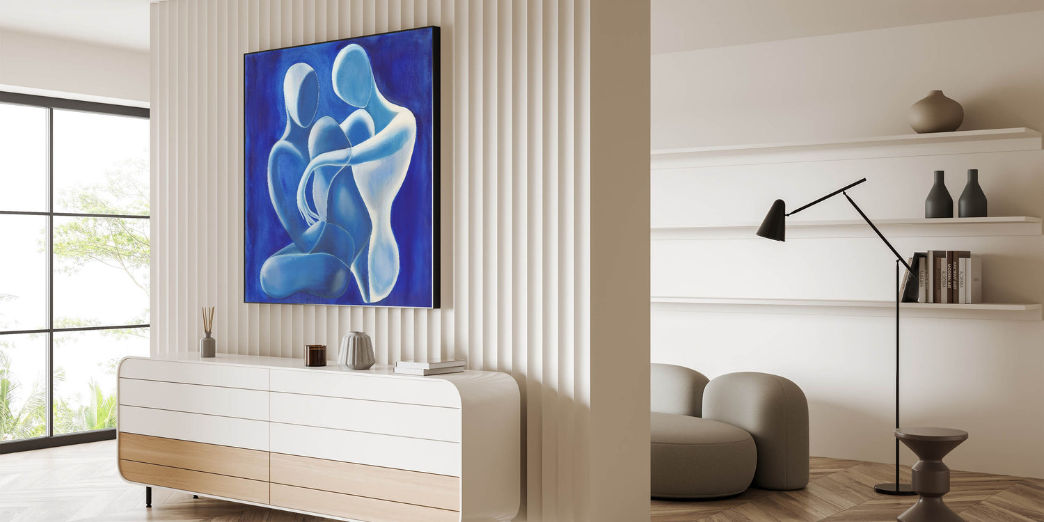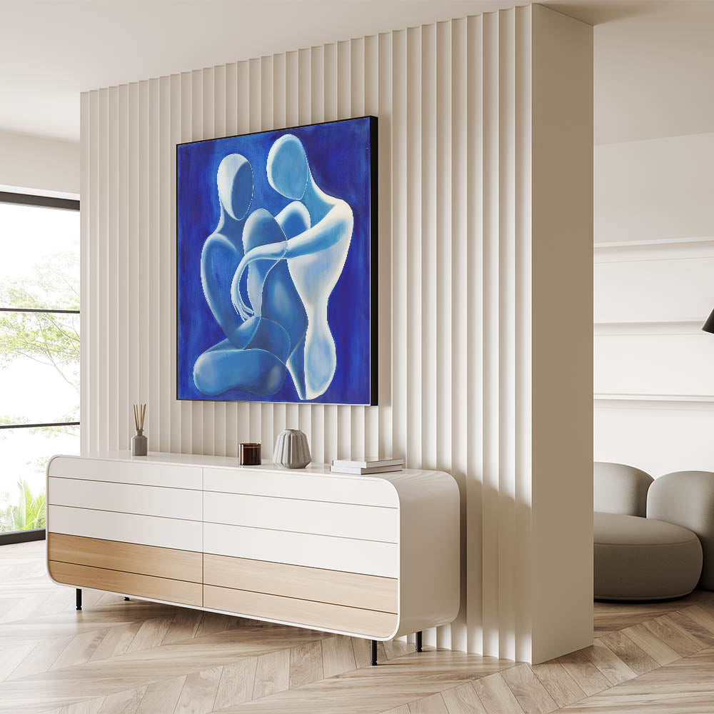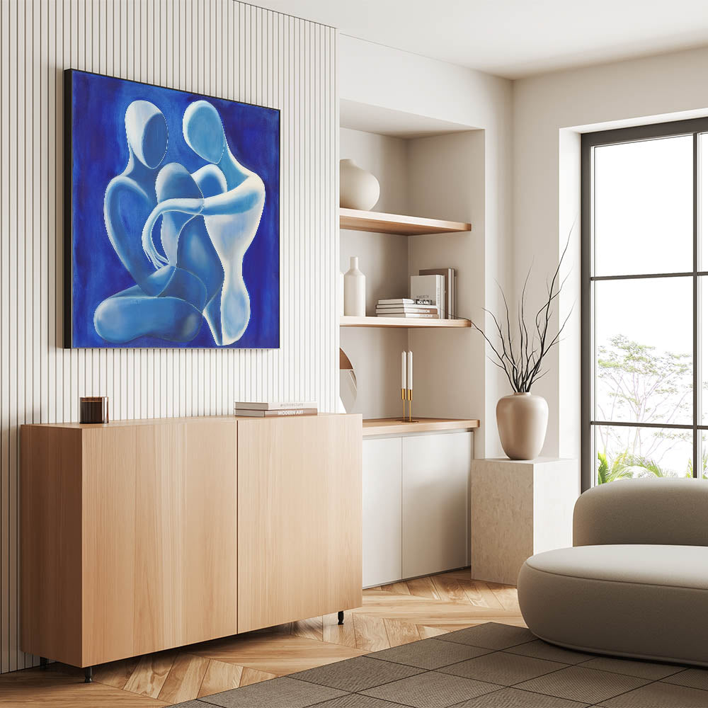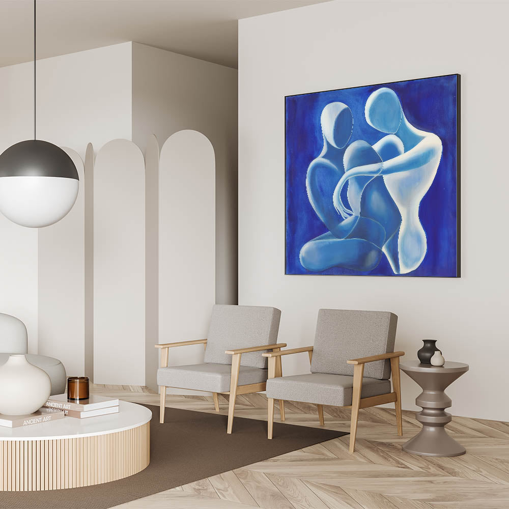 Bring a sense of calm and connection to your space with this Abstract Human Figures in Blue, featuring a serene composition of intertwined human forms in gradient shades of blue and white. This artwork captures the essence of unity and tranquility, offering a minimalist yet powerful aesthetic. Perfect for modern interiors, this figurative abstract canvas art makes a beautiful addition to any home or office.