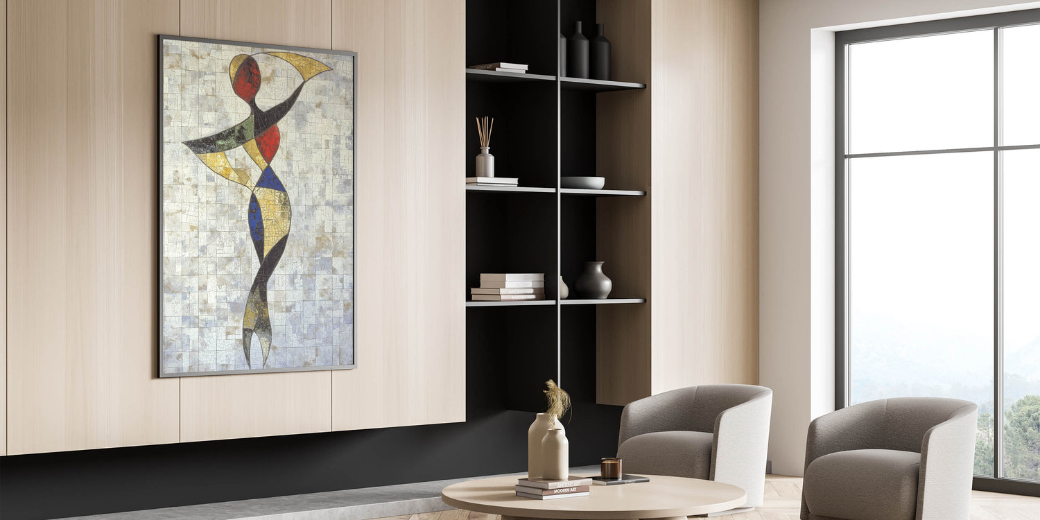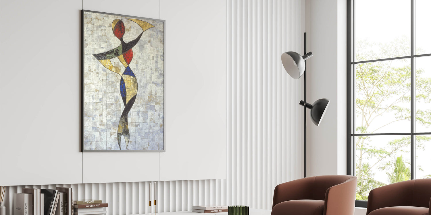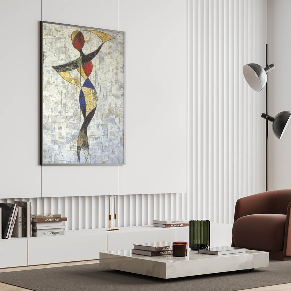 • Unique mosaic design showcasing a flowing, artistic human form.