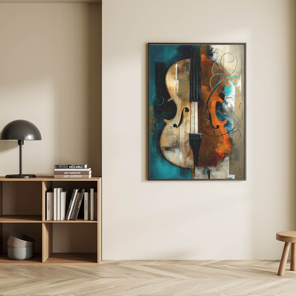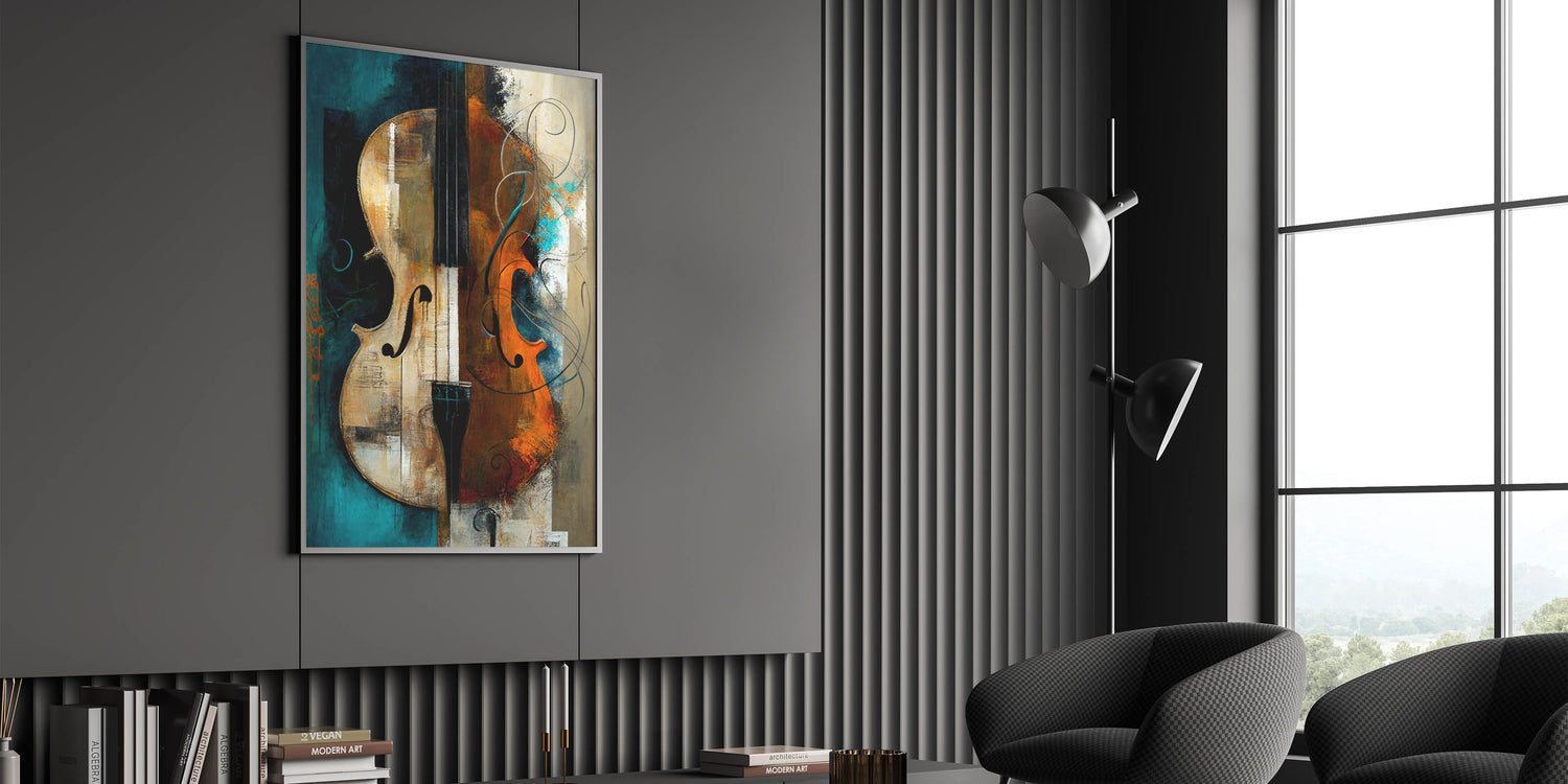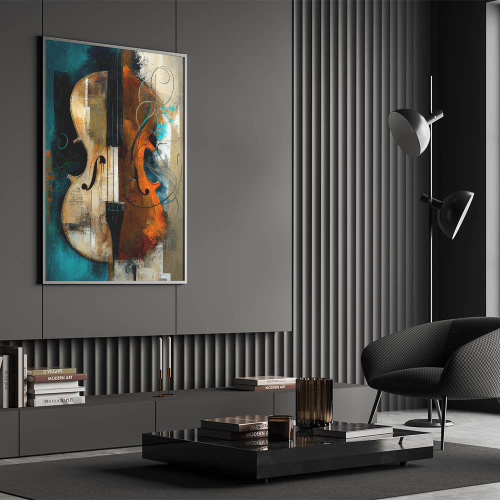 Ideal for those who appreciate the arts, this abstract violin art piece brings warmth and sophistication to any space. Its rich colors and dynamic composition make it a captivating focal point, harmonizing the beauty of music and visual art.