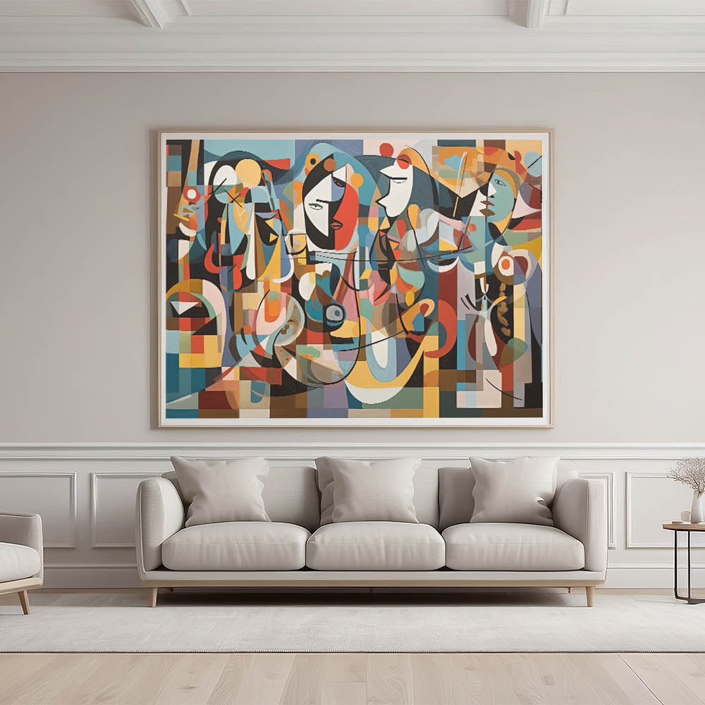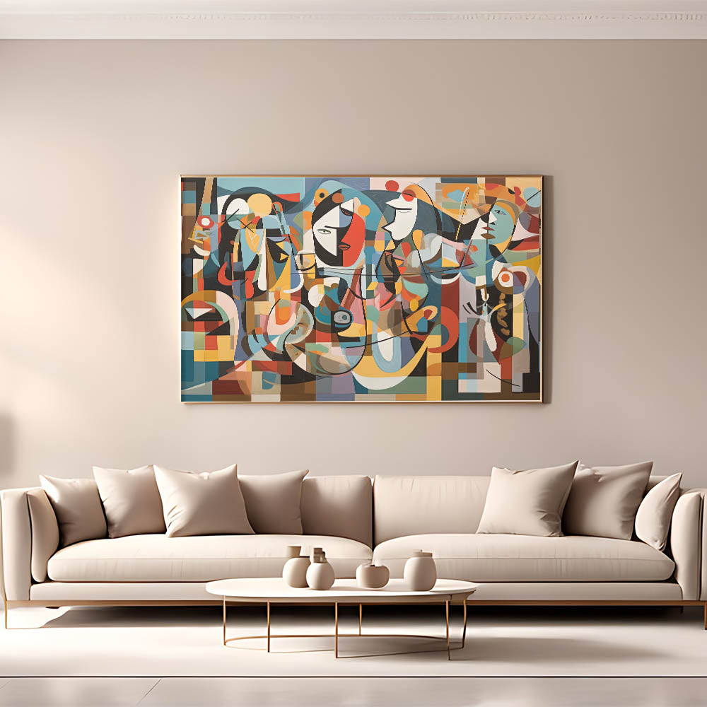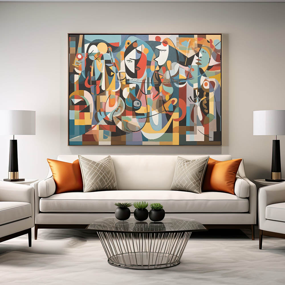 - Vibrant Design: This artwork features a vivid color palette that includes deep blue, warm orange, and muted browns, ideal for creating an impactful visual display.