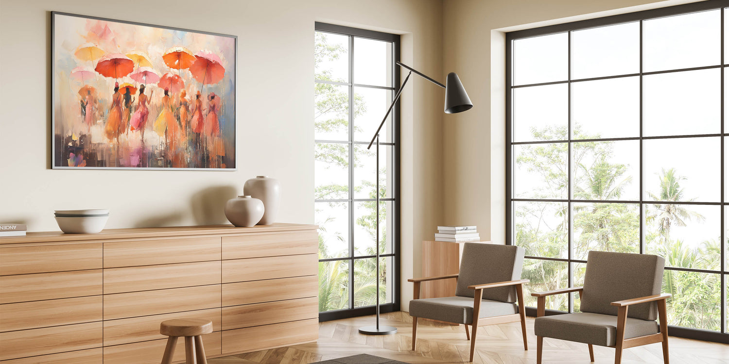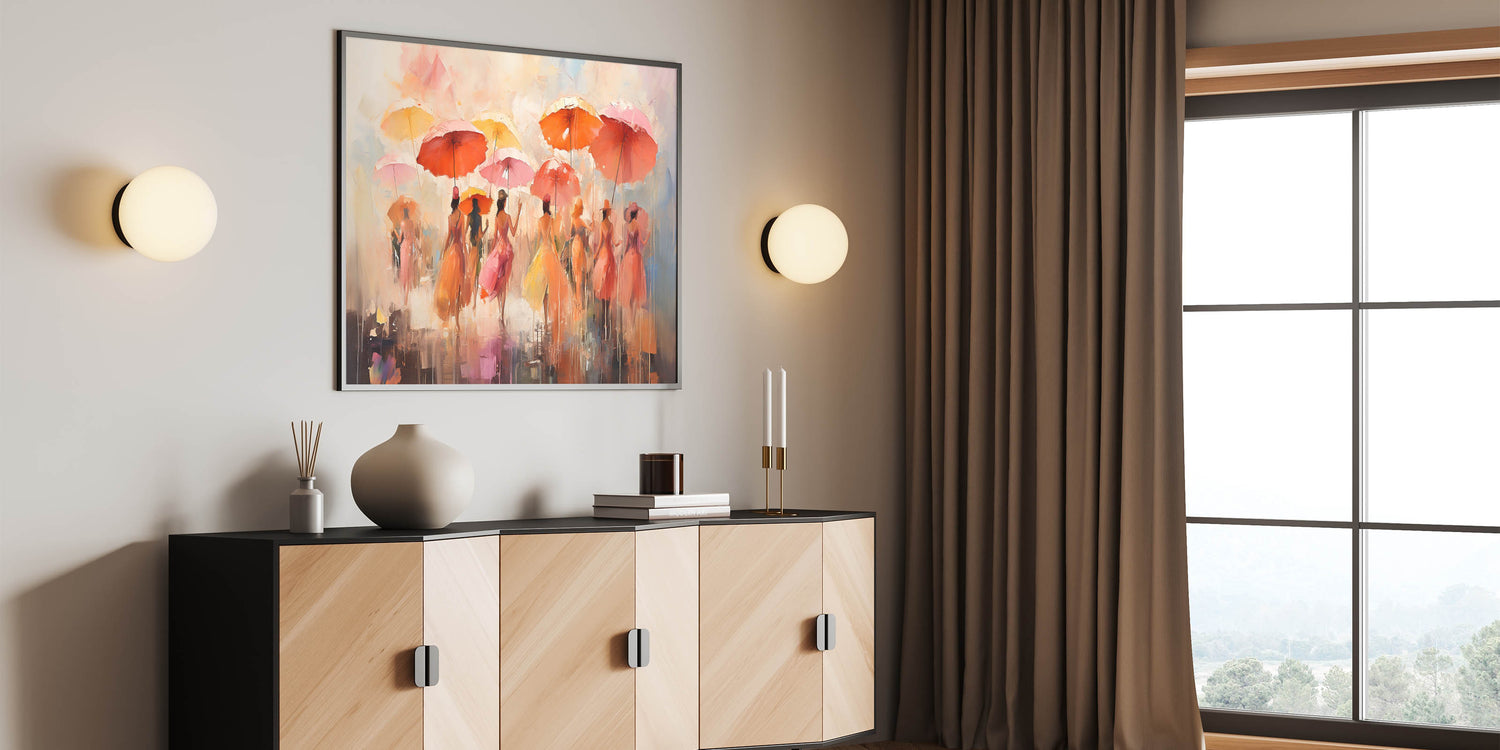 - High-quality materials: Available in stretched canvas, framed canvas, acrylic glass, framed acrylic glass, framed print, rolled canvas, and rolled print.