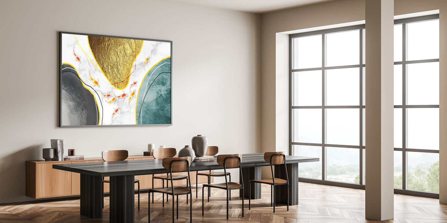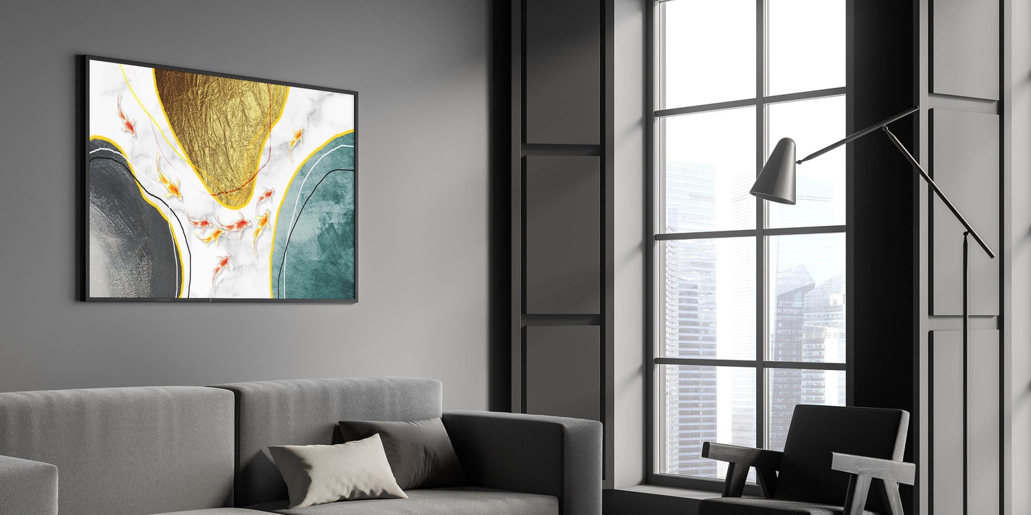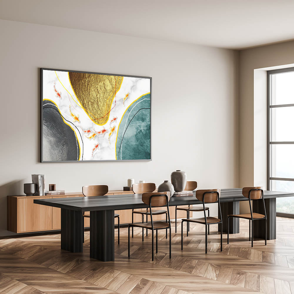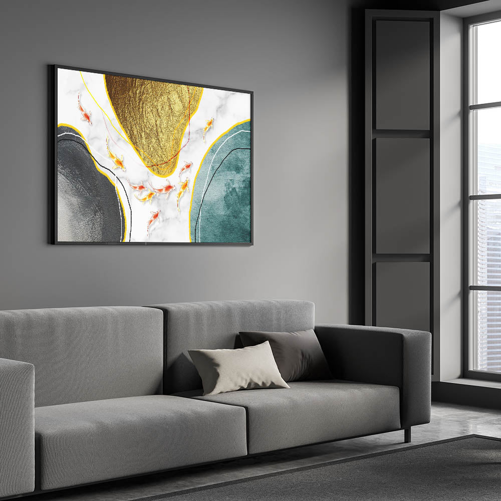 - Dynamic Design: Features vivid koi fish and geometric line art, perfect for modern or contemporary interiors.