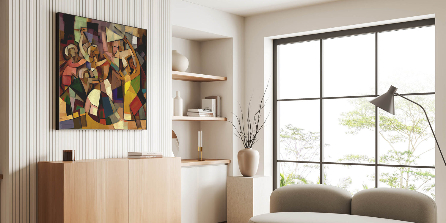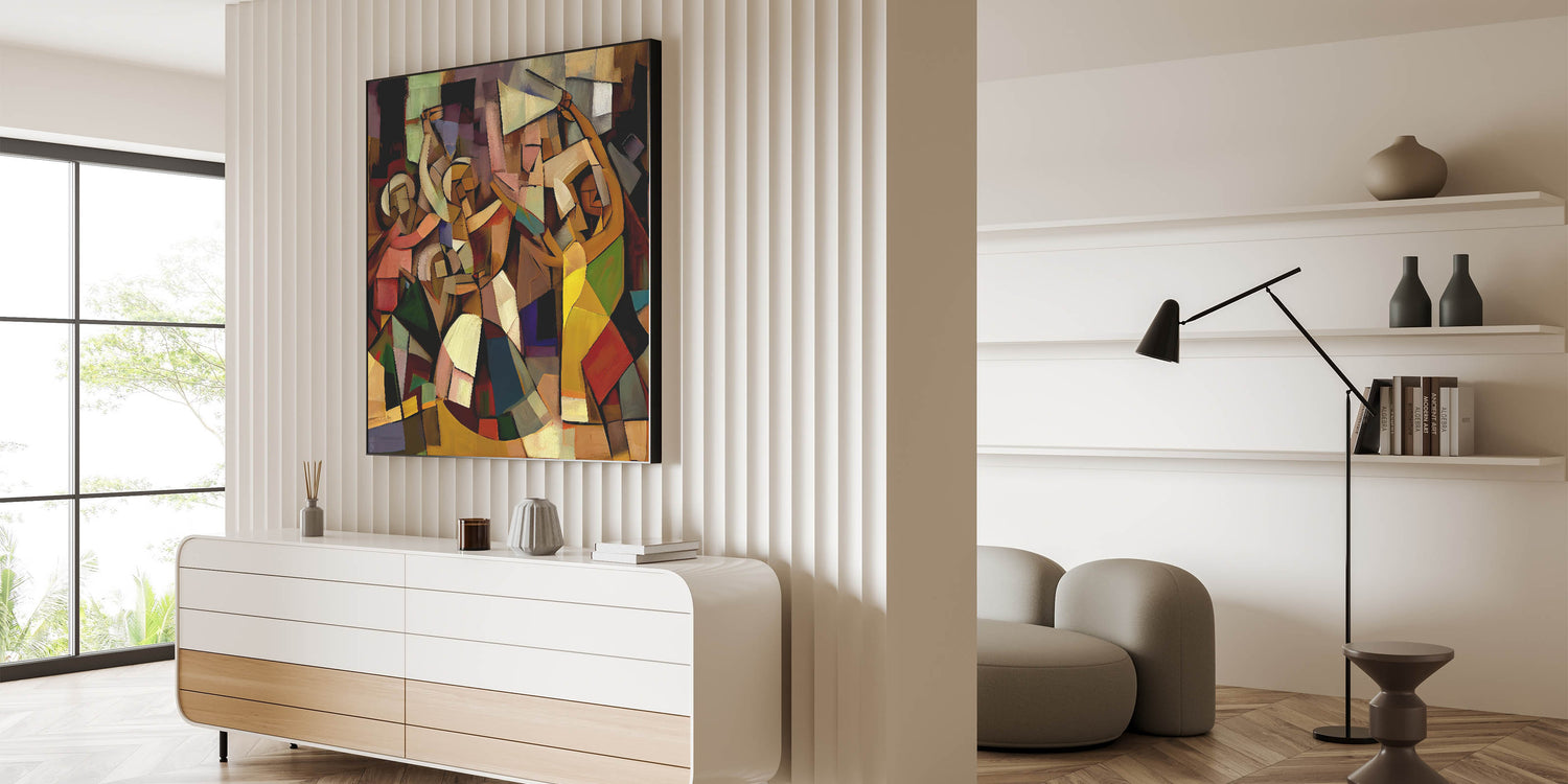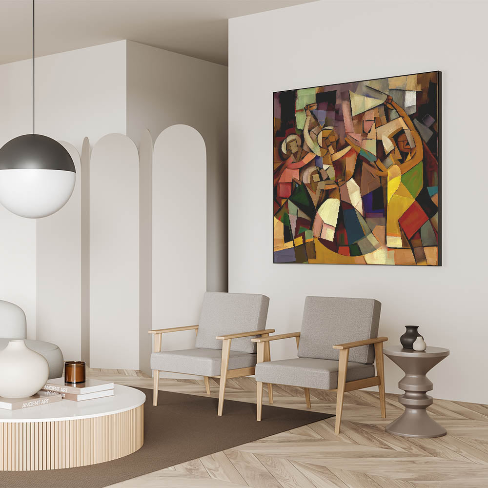 Transform any room with this vibrant figurative abstract design, ideal for living rooms, offices, or creative spaces. Its blend of color and motion brings life and energy to your walls, leaving a lasting impression on guests and art enthusiasts alike.