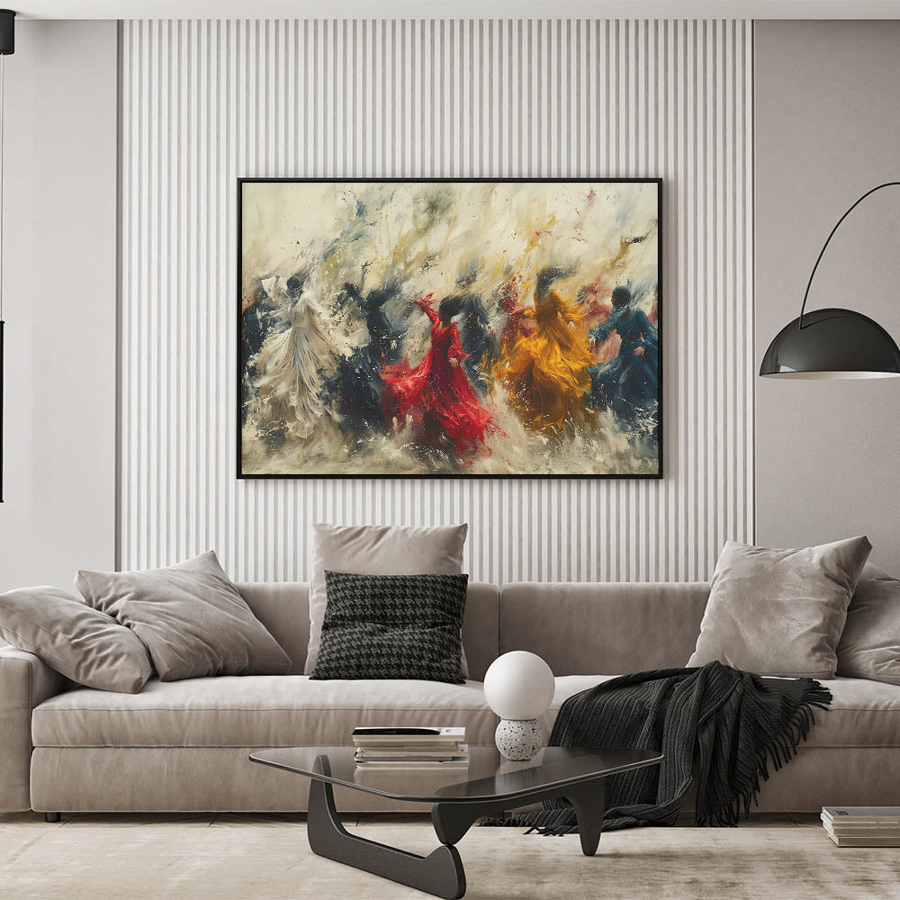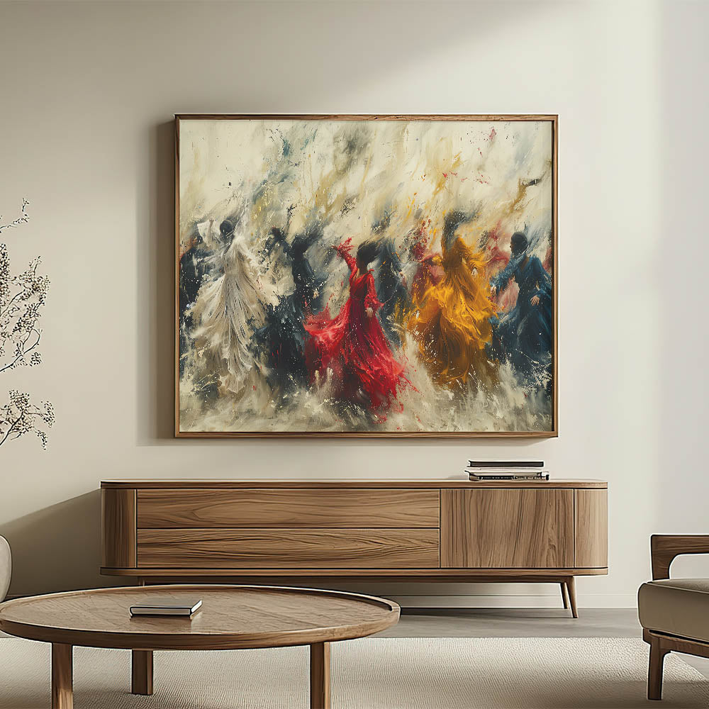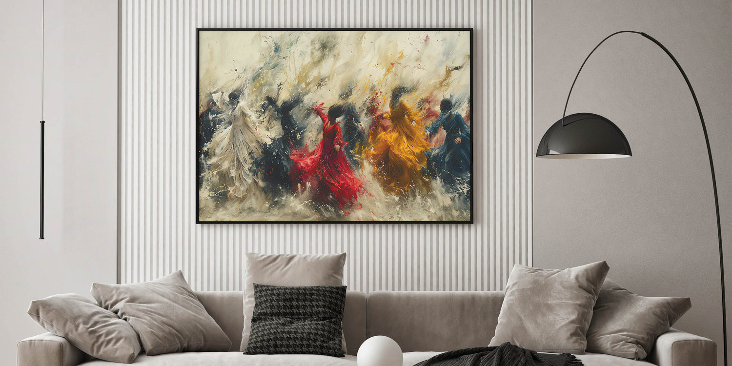 Bring energy and movement into your home with our Dynamic Figurative Abstract Canvas. This captivating artwork features vibrant human figures in dynamic poses, set against a swirling, expressive background. The vivid colors and flowing forms create a sense of motion and vitality, making it a perfect focal point for any modern interior.