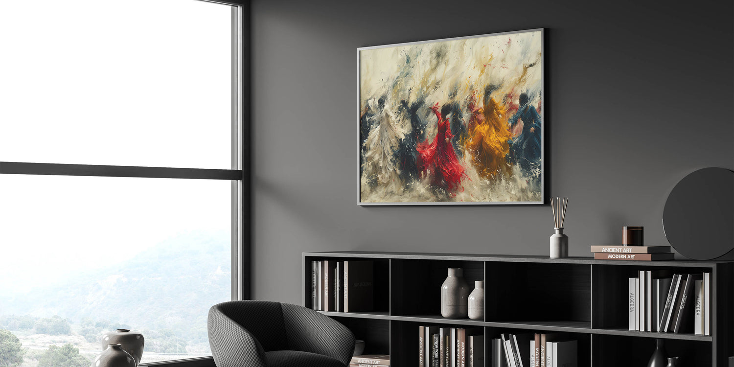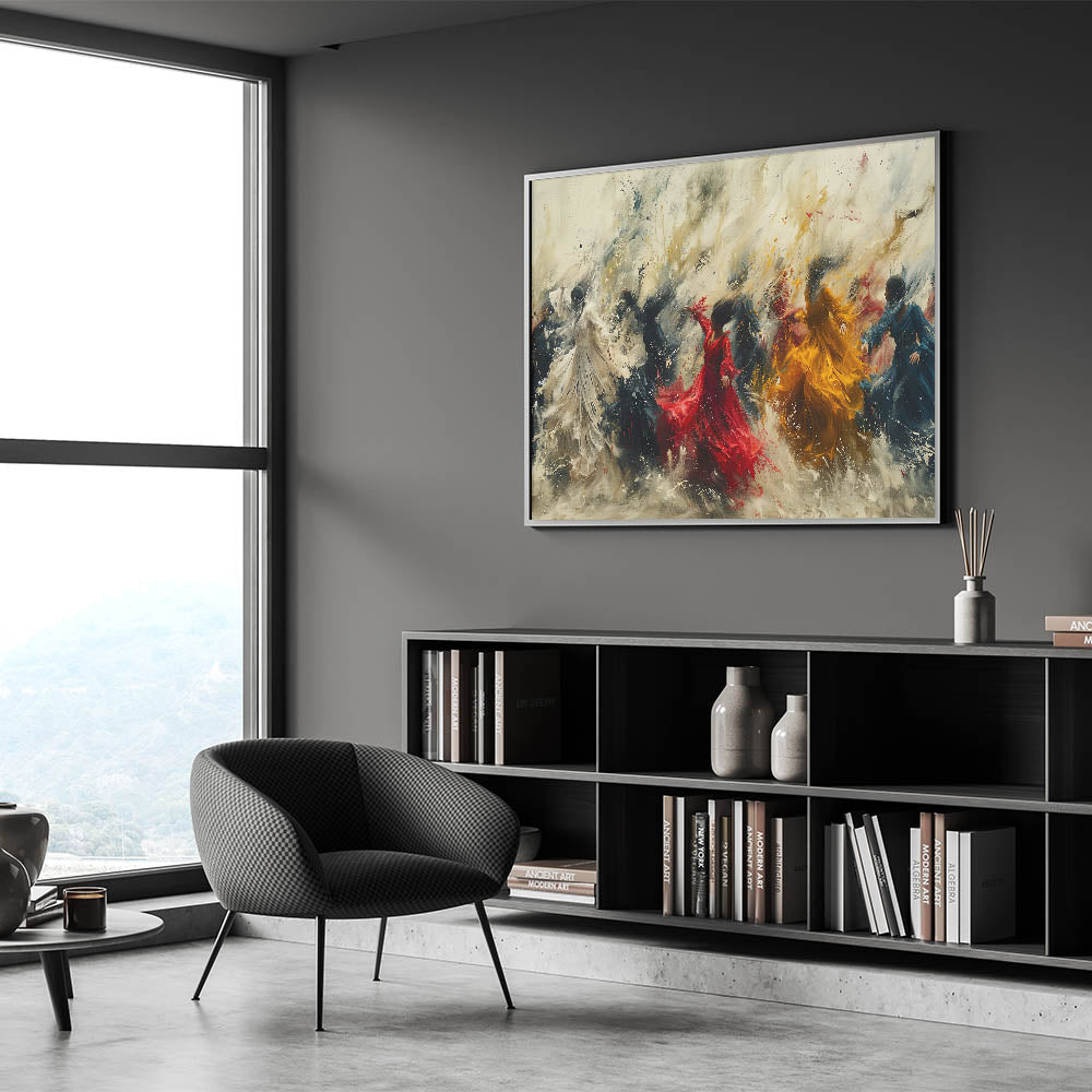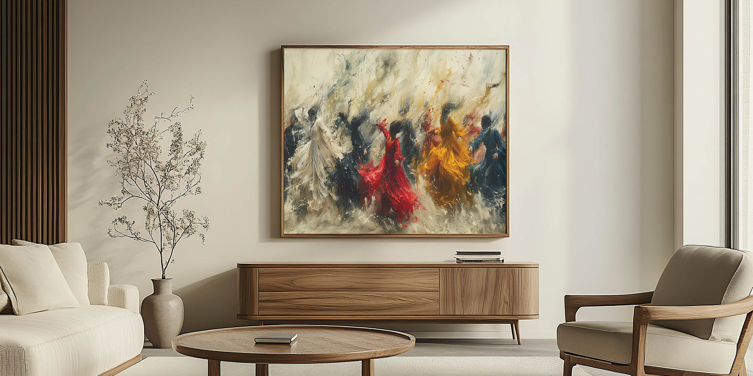 Bring energy and movement into your home with our Dynamic Figurative Abstract Canvas. This captivating artwork features vibrant human figures in dynamic poses, set against a swirling, expressive background. The vivid colors and flowing forms create a sense of motion and vitality, making it a perfect focal point for any modern interior.