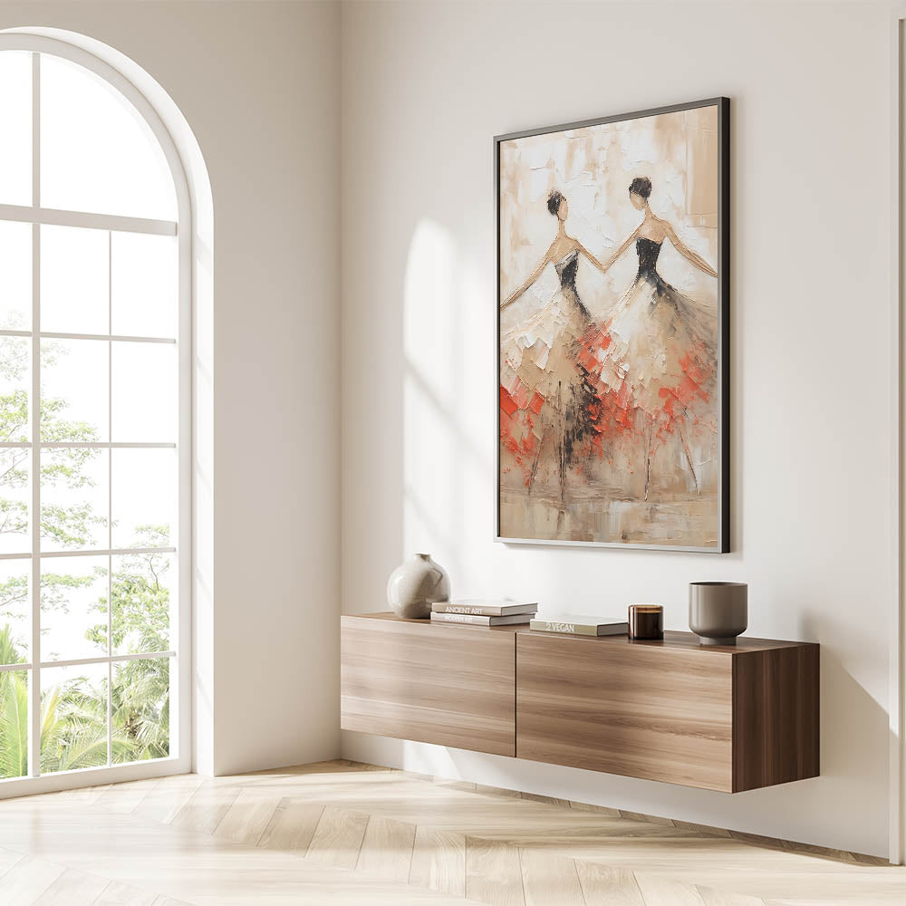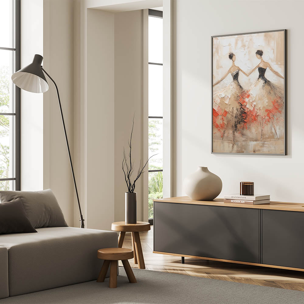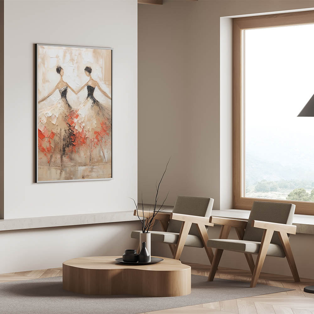 For art lovers who value expression and elegance, this abstract ballerina duo brings warmth and sophistication to any room. Its graceful composition and soothing colors make it an ideal centerpiece, infusing your space with charm and artistic allure.