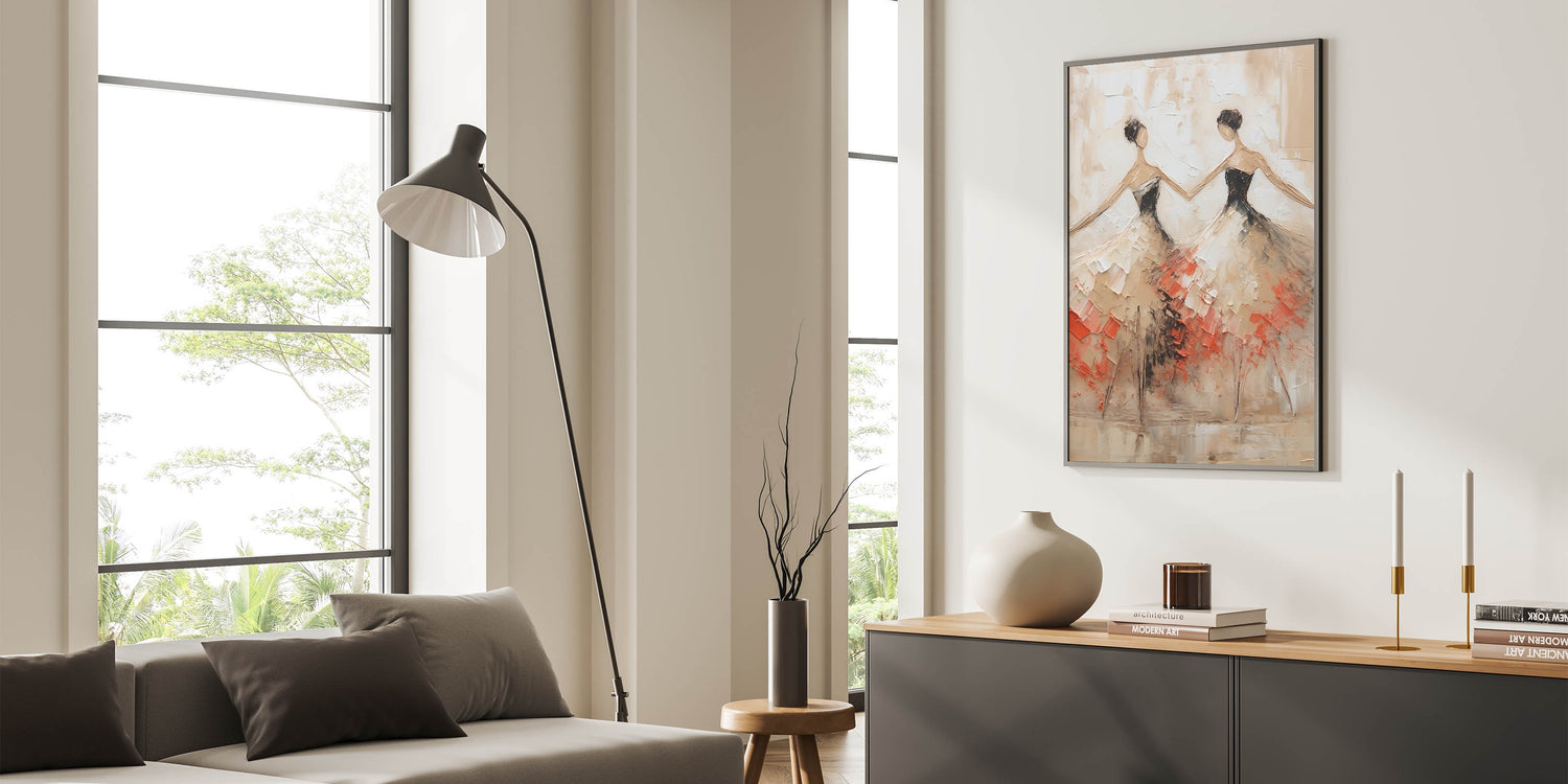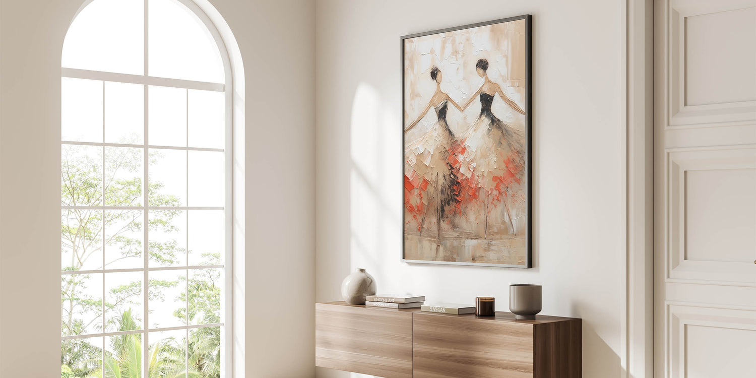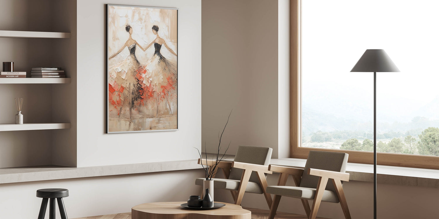 For art lovers who value expression and elegance, this abstract ballerina duo brings warmth and sophistication to any room. Its graceful composition and soothing colors make it an ideal centerpiece, infusing your space with charm and artistic allure.