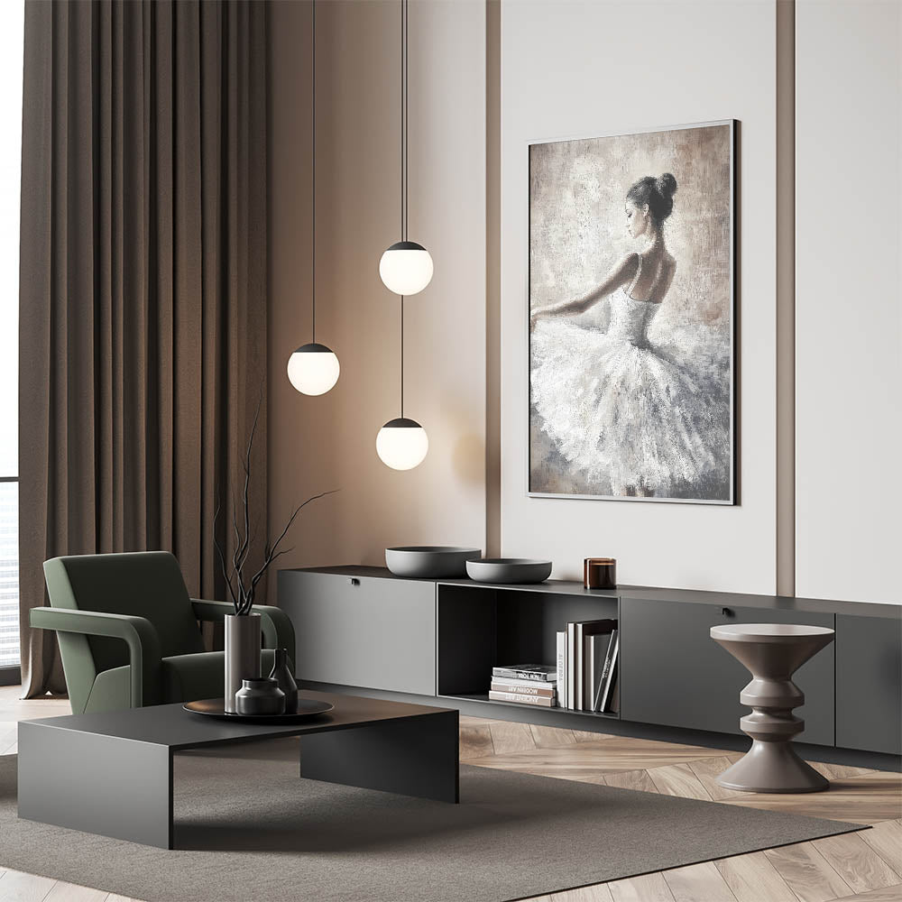 Capture the beauty of movement and grace with this Elegant Figurative Wall Art, featuring a stunning portrayal of a ballerina in a delicate pose. The soft white tones of her flowing tutu, set against an earthy beige background, exude a sense of timeless elegance and tranquility. This artwork blends classical charm with contemporary sophistication, making it an ideal addition to modern or traditional interiors.
