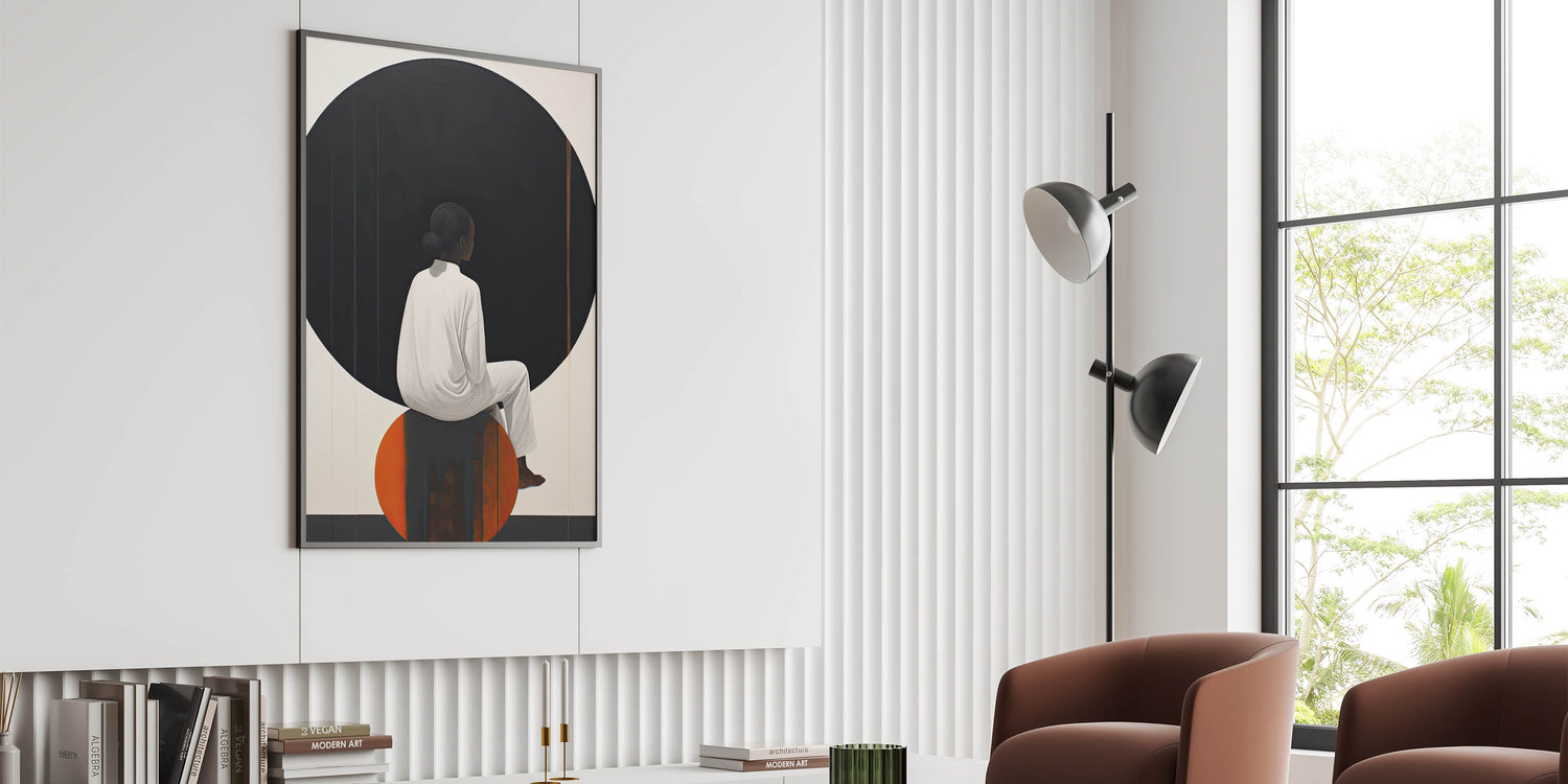 - Elegant Minimalist Design: The combination of simple shapes, contrasting colors, and minimalist composition brings harmony and a calm, reflective feel to any room.