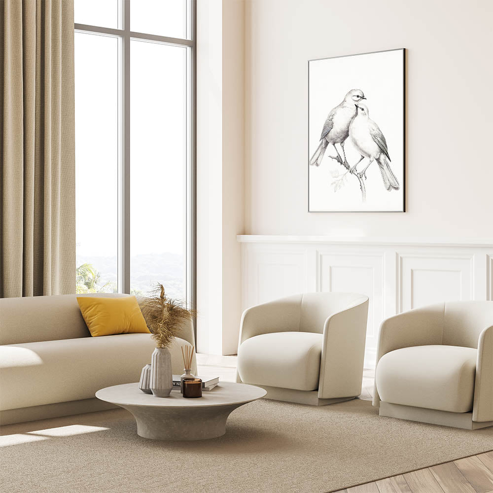 This minimalist bird sketch combines simplicity and grace, offering a timeless addition to any room. Its detailed and calming presence makes it a versatile piece for a variety of interior styles, from modern to nature-inspired spaces.