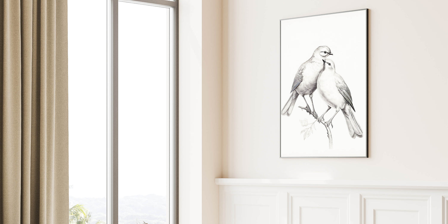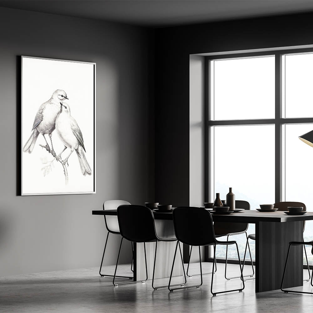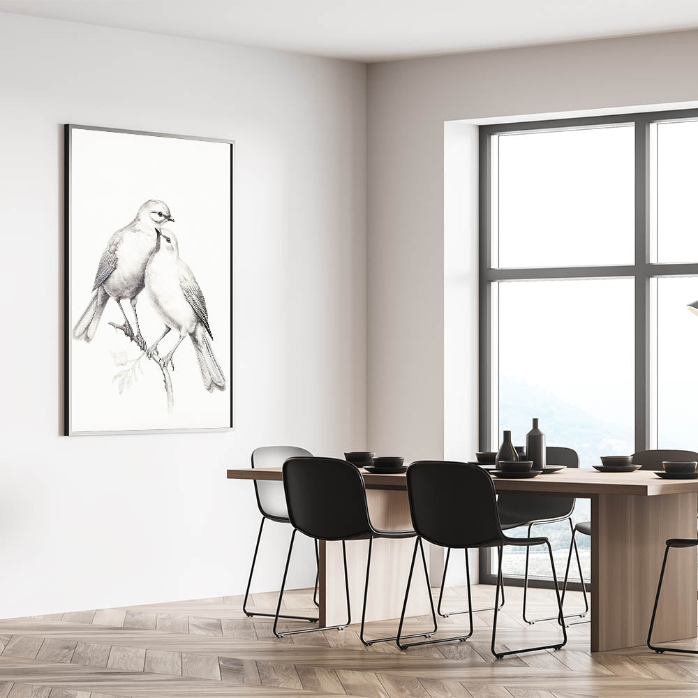 Enhance your space with this delicate and charming pencil sketch of two birds perched on a branch. The intricate details and soft shading bring these birds to life, capturing their peaceful nature and creating a sense of harmony and beauty. Ideal for nature lovers and minimalist decor enthusiasts, this artwork brings the beauty of wildlife into your home, perfect for living rooms, bedrooms, or offices.