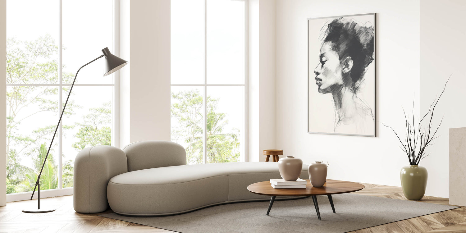 This minimalist portrait art is ideal for those who appreciate understated beauty and skilled artistry. Its calm and introspective design enhances the ambiance of any modern or contemporary space, adding a touch of elegance and artistic depth.