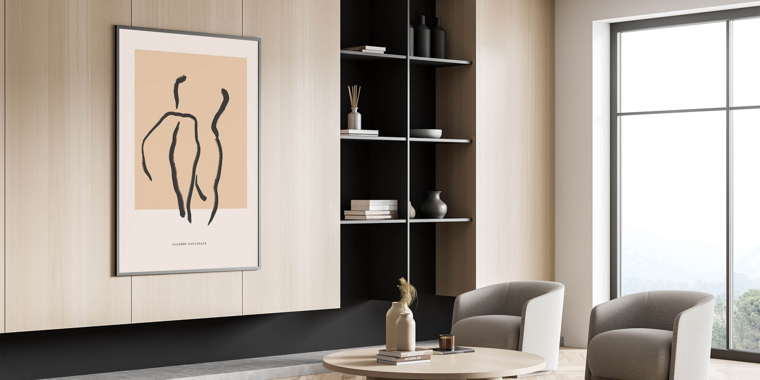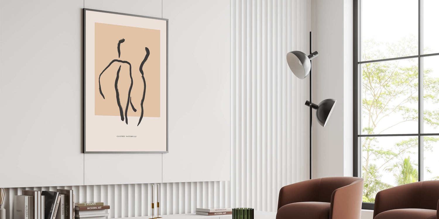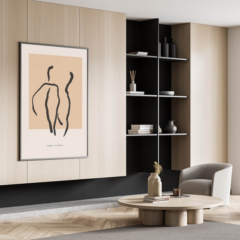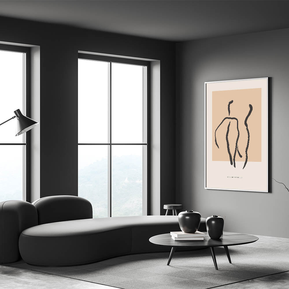 Embrace the simplicity and elegance of modern design with this Minimalist Line Art Print. This artwork features a striking nude figure abstractly rendered in bold, black brushstrokes against a soft beige background. The combination of minimalist lines and neutral tones creates a sophisticated piece that perfectly complements contemporary and modern interiors.
