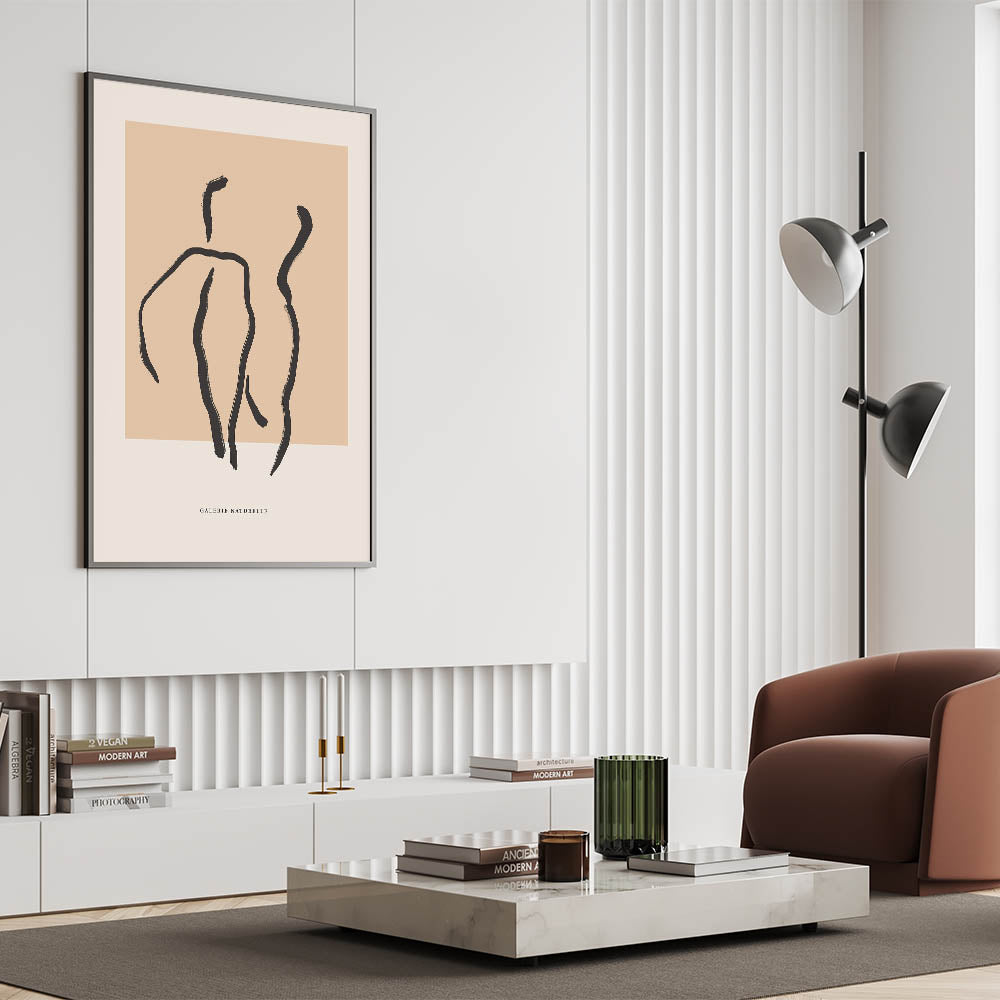 - High-quality minimalist canvas available in multiple formats, including stretched and framed.