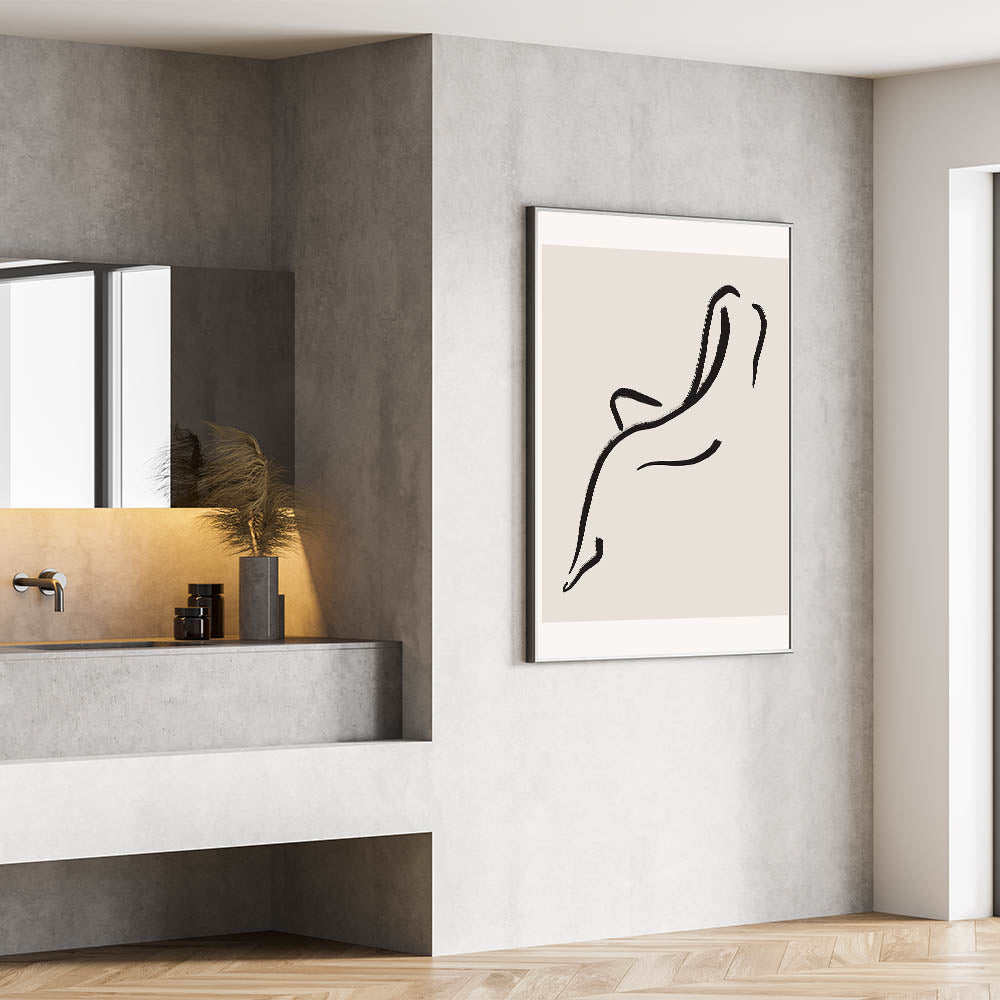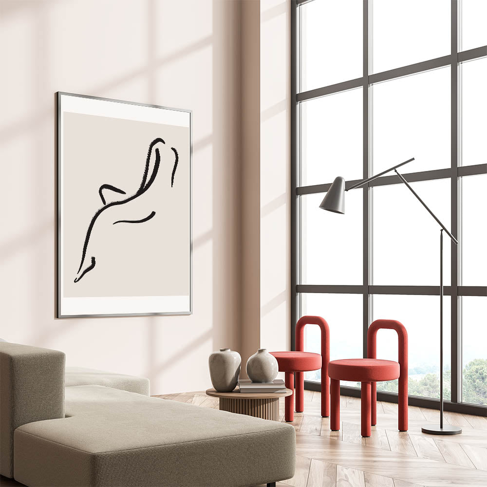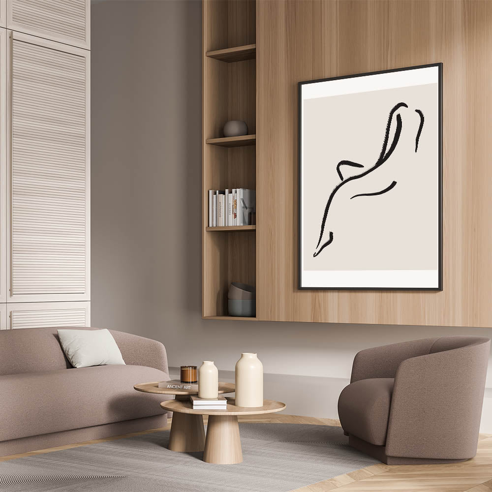 Bring elegance and simplicity to your space with this minimalist line art wall print. Featuring a graceful abstract figure drawn with clean black lines on a neutral background, this artwork embodies the beauty of minimalism. Its simple yet sophisticated design makes it ideal for modern and minimalist interiors, adding a touch of refinement to any room. Perfect for living rooms, bedrooms, or offices, this piece offers a calming and stylish aesthetic.