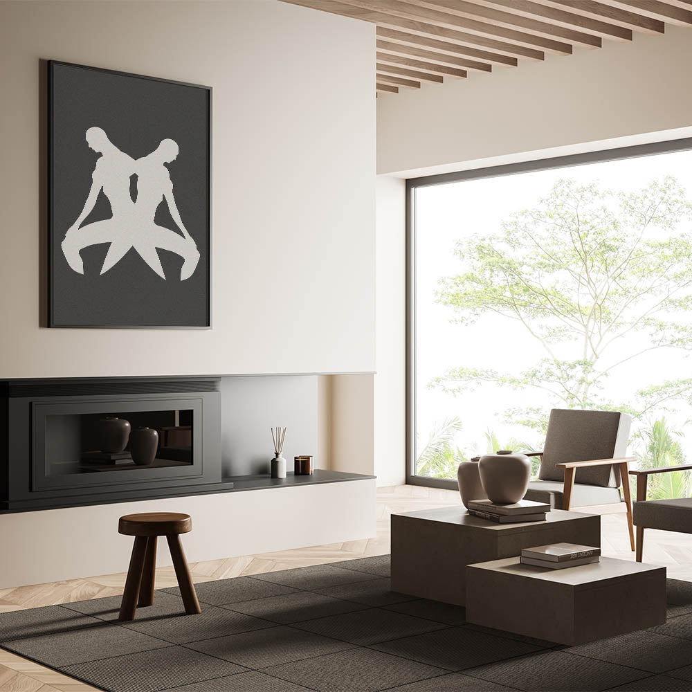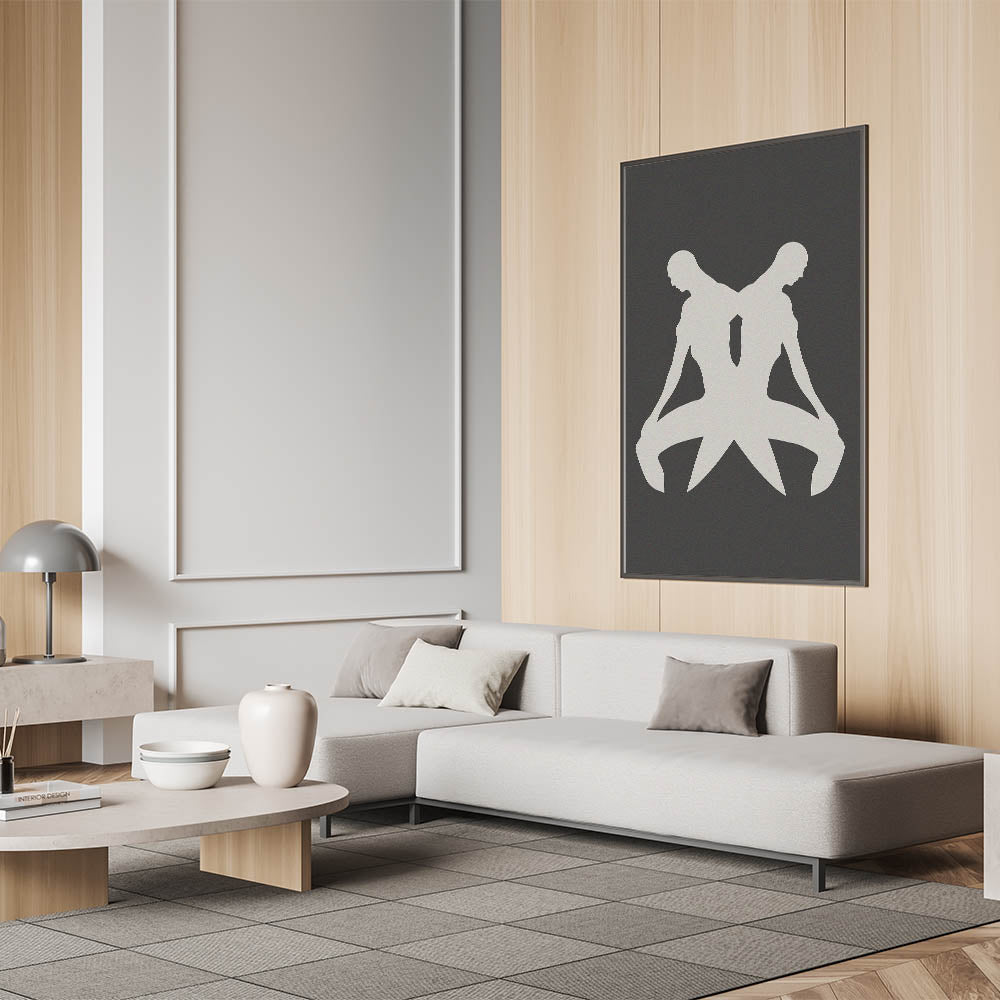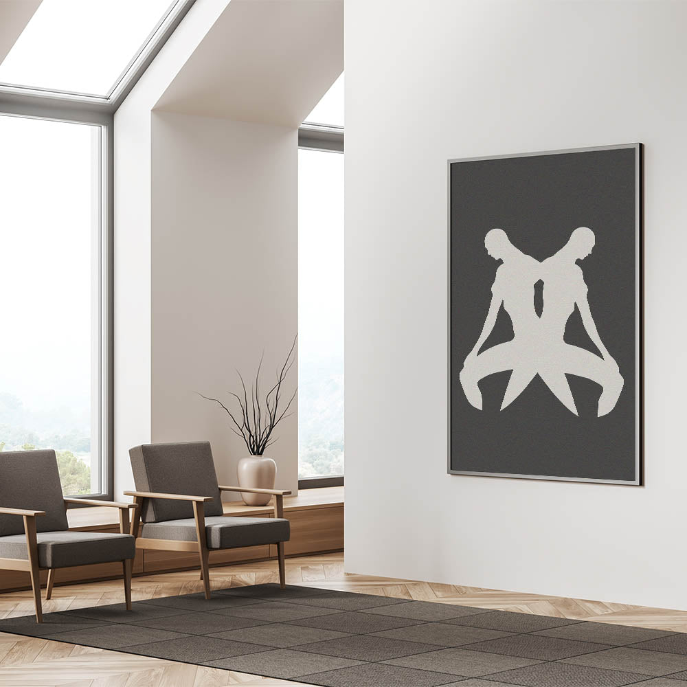 Elevate your decor with our "Minimalist Mirrored Figure Art," a striking representation of modern design and minimalist aesthetics. This artwork features mirrored silhouettes of figures, capturing the essence of contemporary minimalist art. Ideal for those who appreciate bold and unique designs, this piece is perfect for adding a sophisticated touch to any room.
