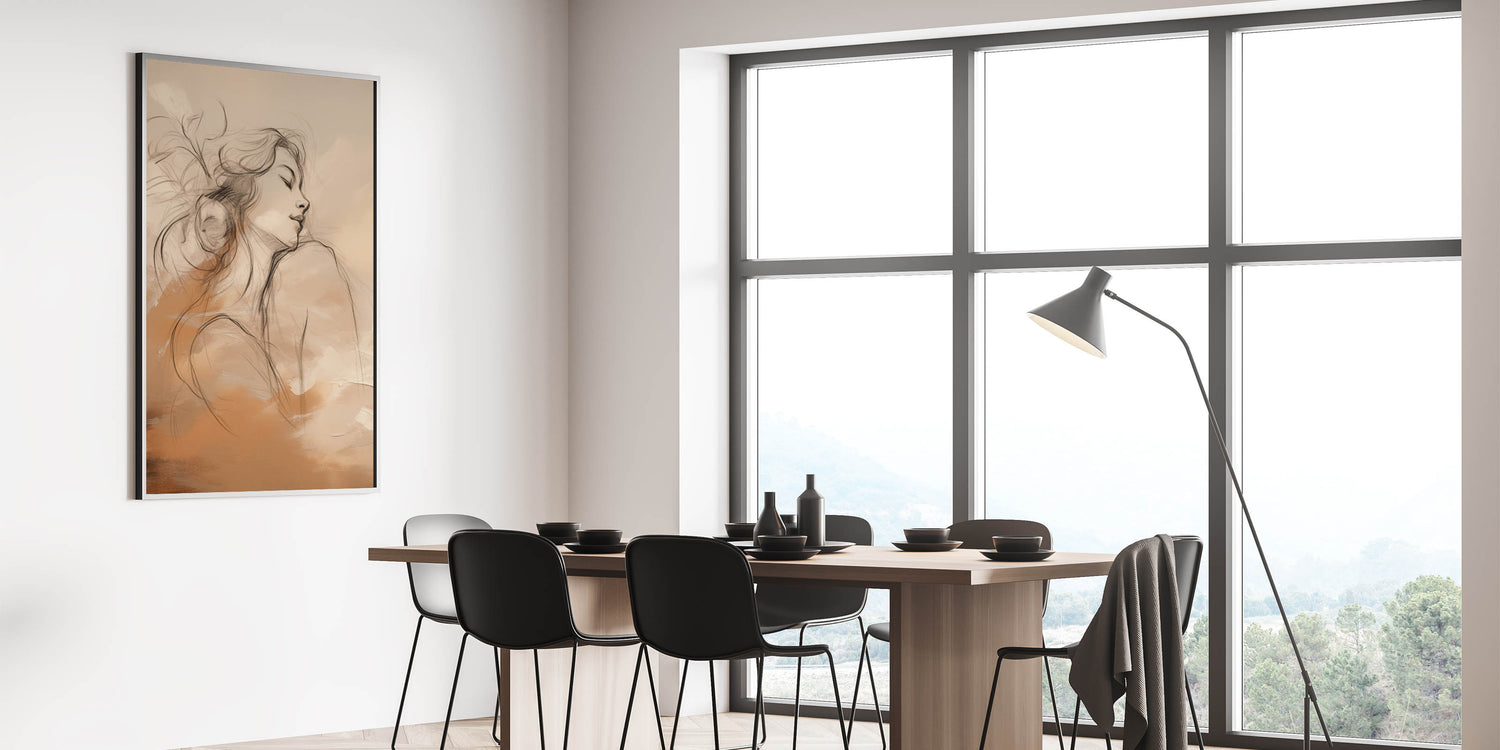 This minimalist portrait art offers a perfect balance of simplicity and emotional depth, making it a serene focal point for any room. Whether you’re looking to create a peaceful bedroom retreat or add elegance to a living room, this artwork will enhance your space with its modern sophistication.