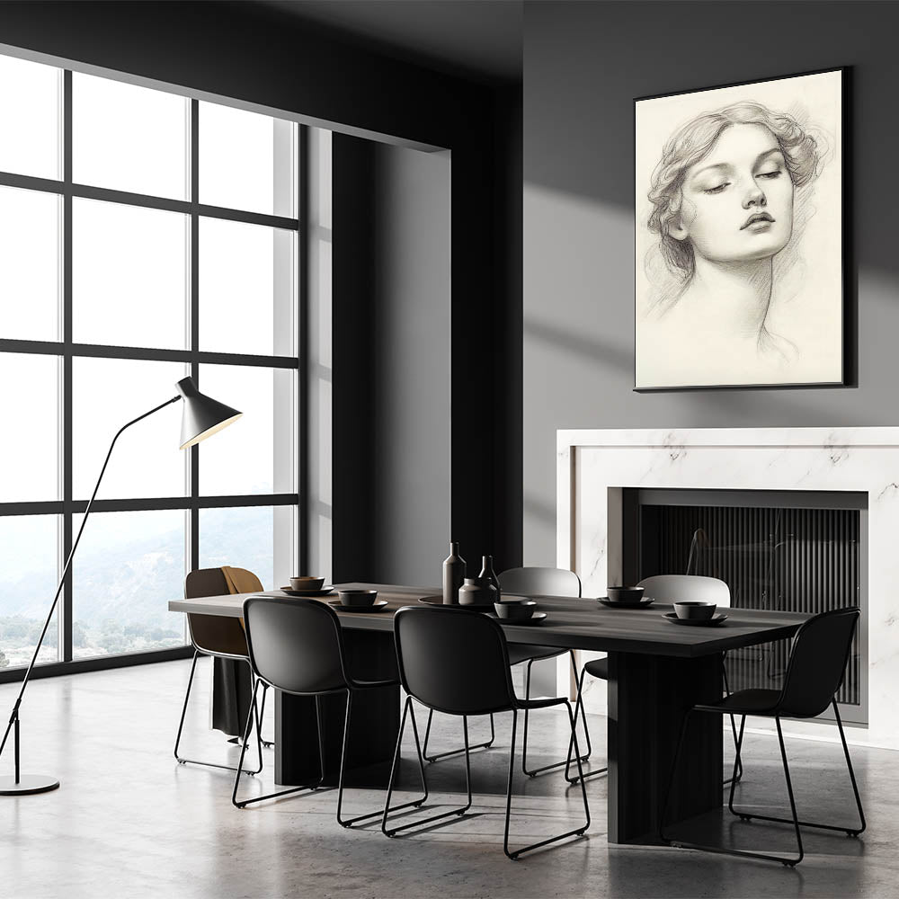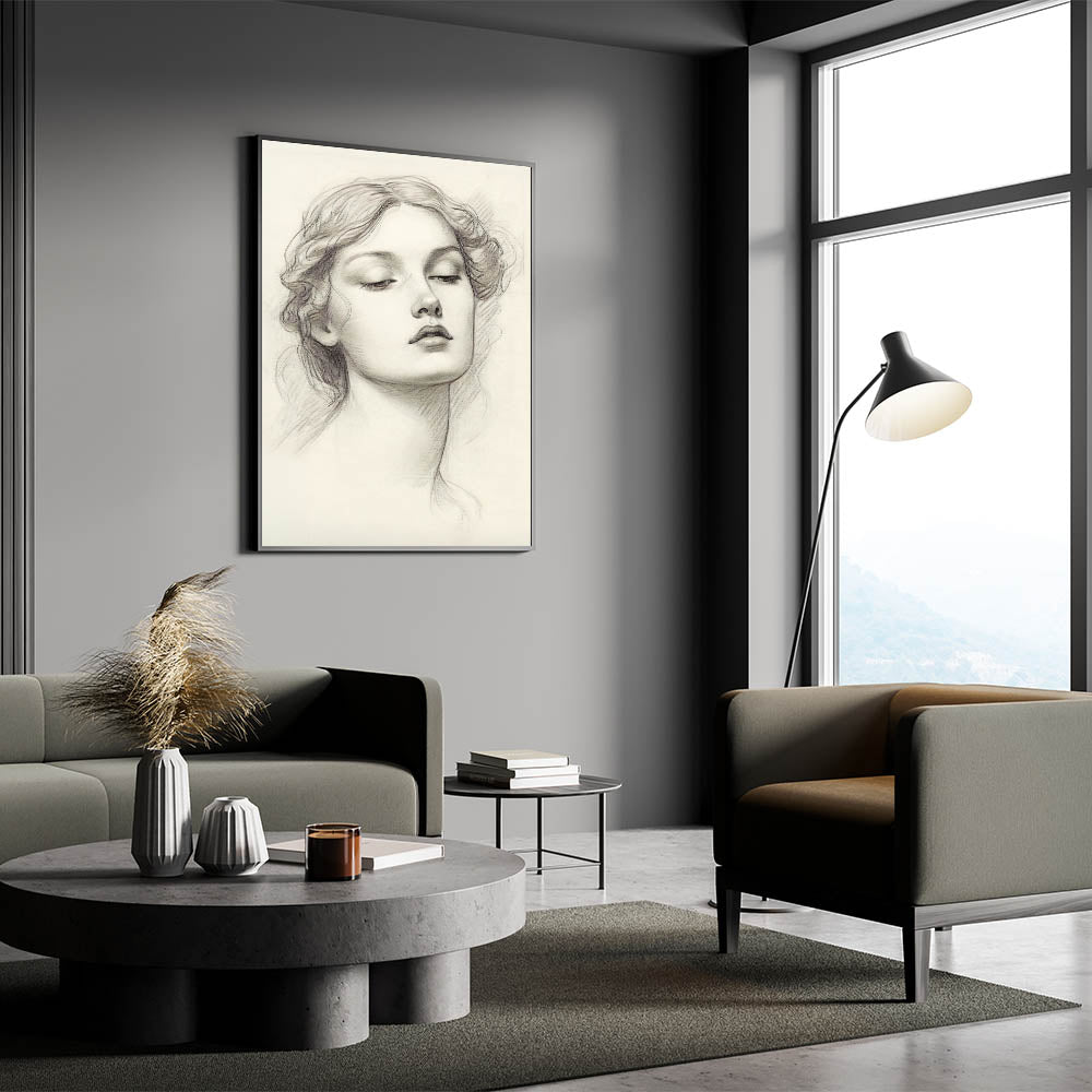 This minimalist portrait art piece is the perfect blend of classic beauty and modern simplicity. Its timeless appeal makes it a versatile addition to a wide range of interior styles, adding a subtle yet striking presence to any space.