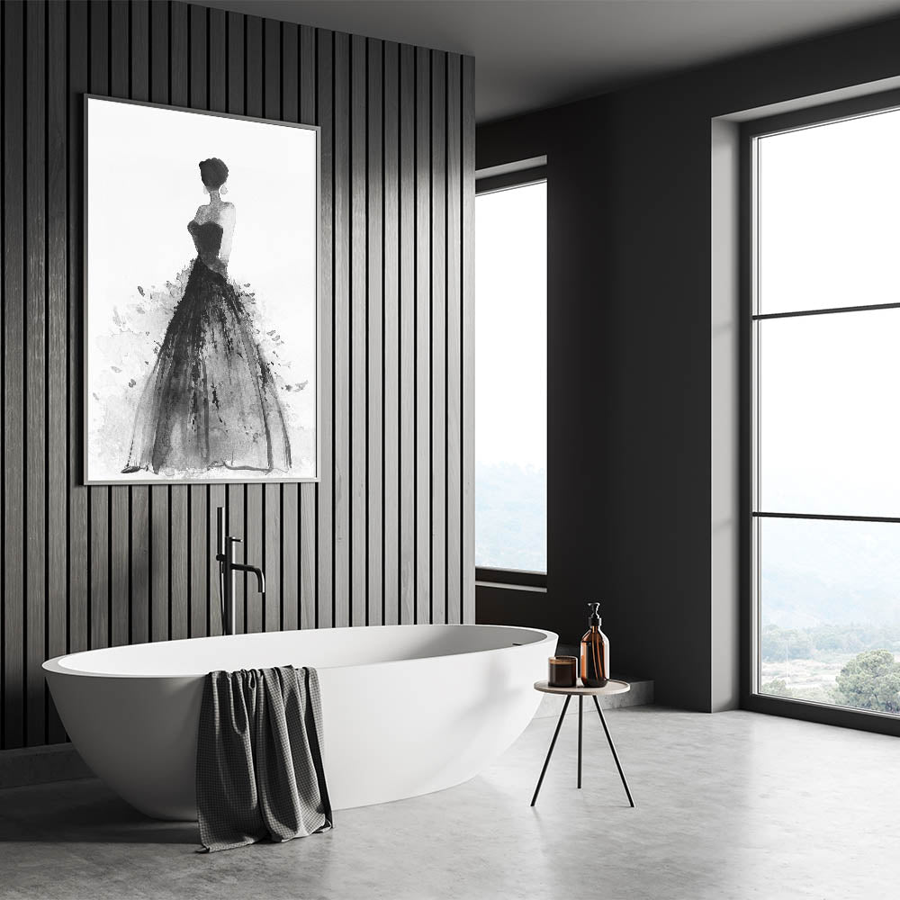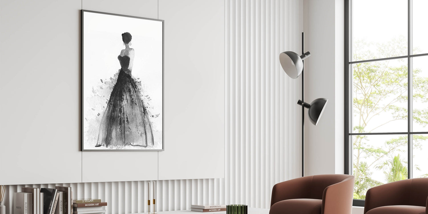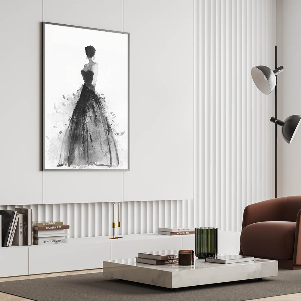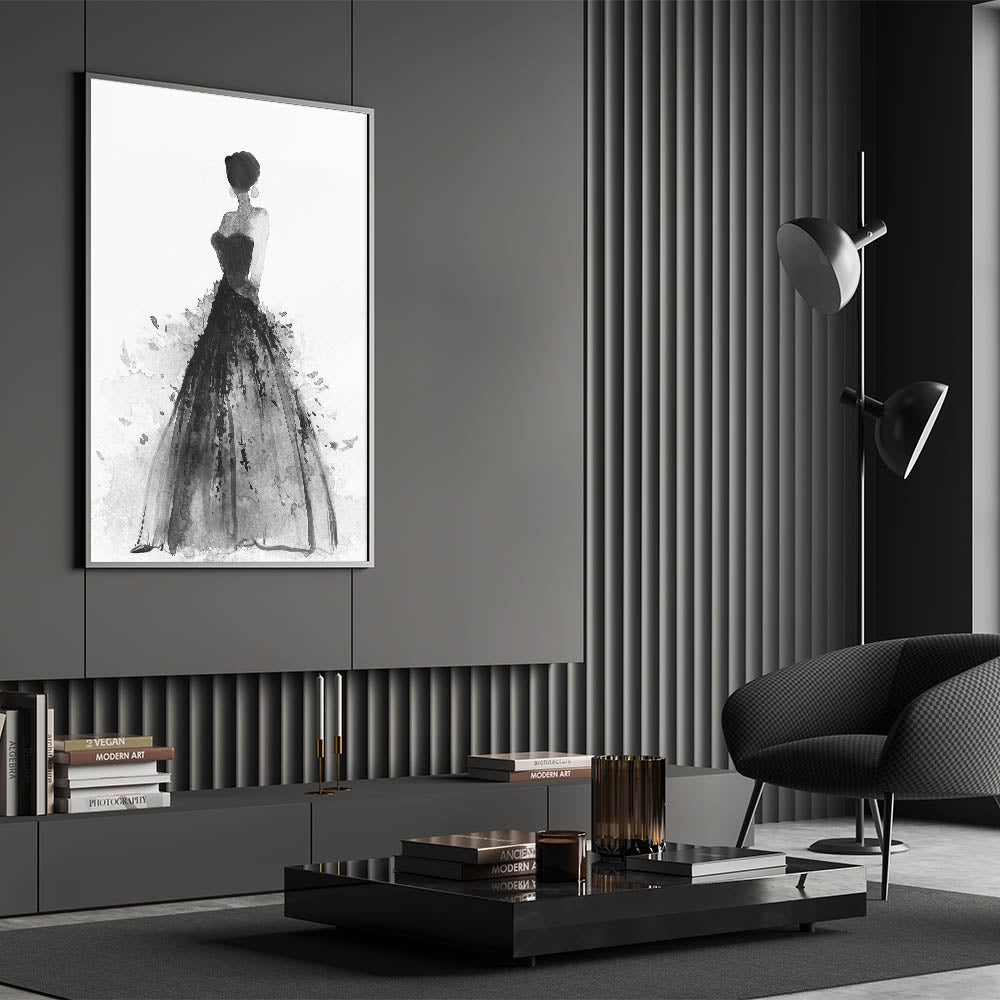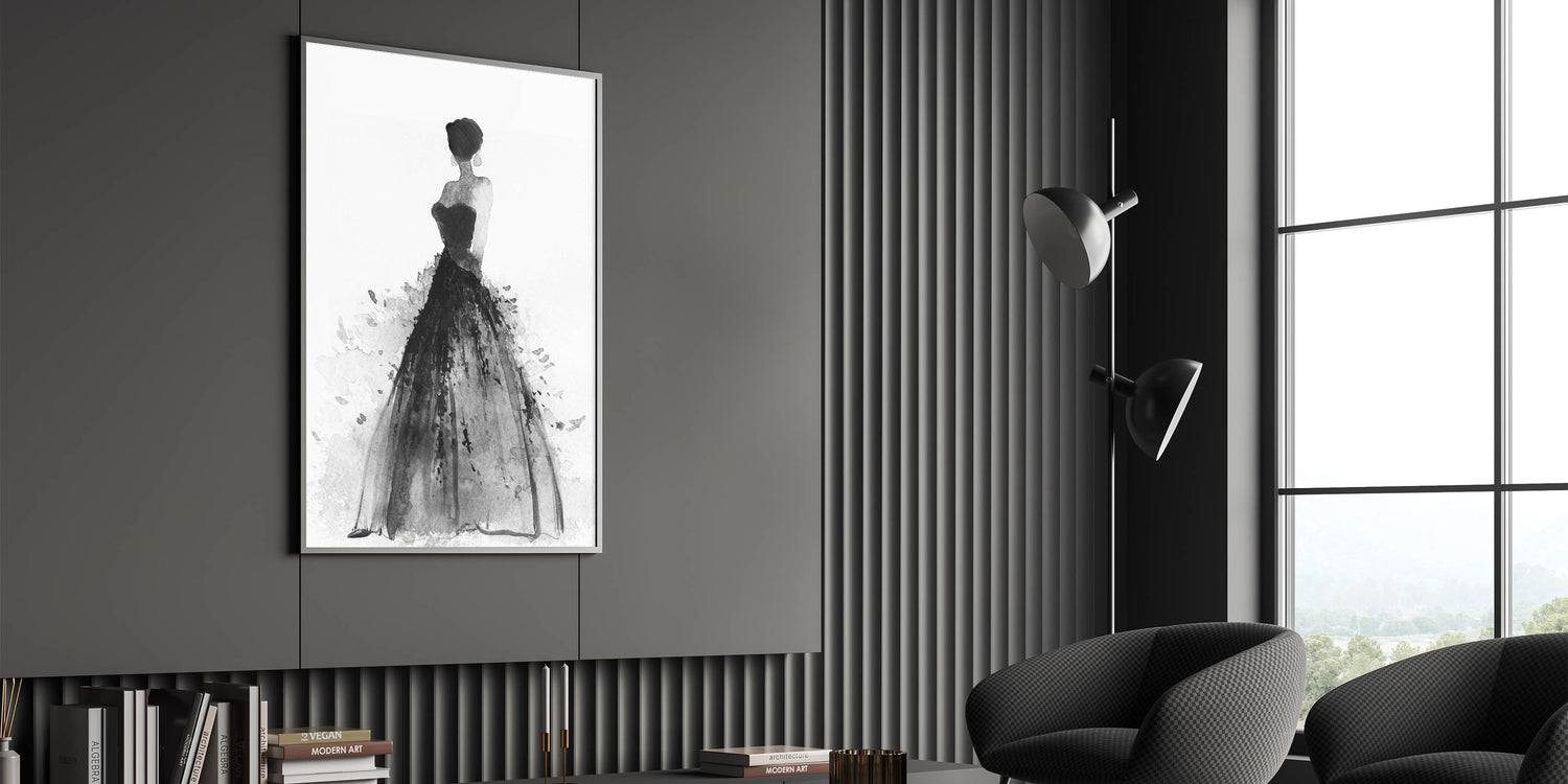 Introduce a touch of sophistication to your space with this striking figurative abstract art piece. Featuring a graceful silhouette of a woman in an elegant black gown, this monochromatic artwork seamlessly combines modern elegance with timeless artistry. The expressive brushstrokes create a dynamic interplay of texture and movement, making it a perfect centerpiece for contemporary interiors.