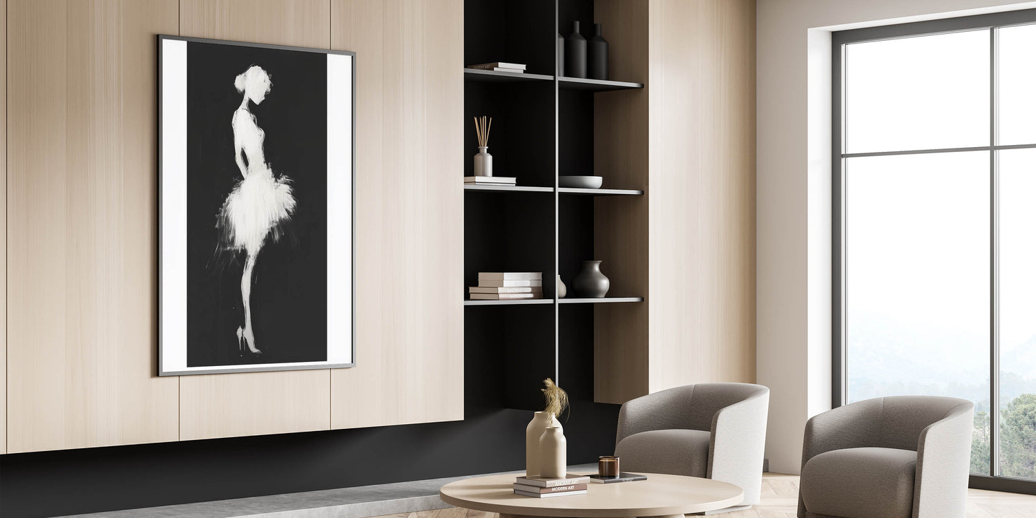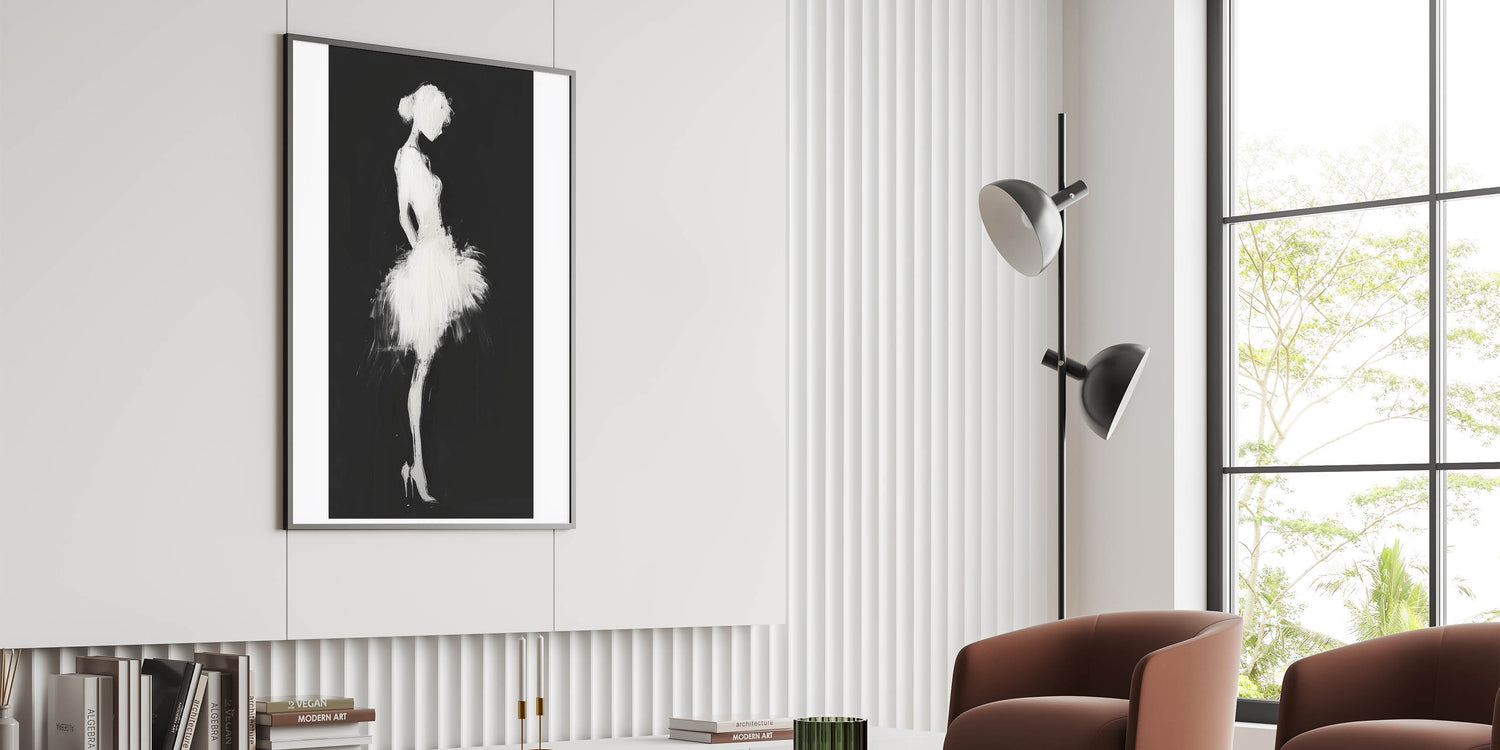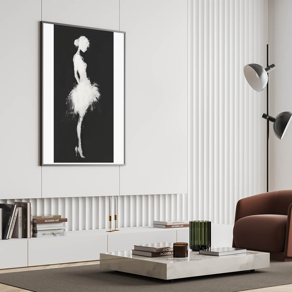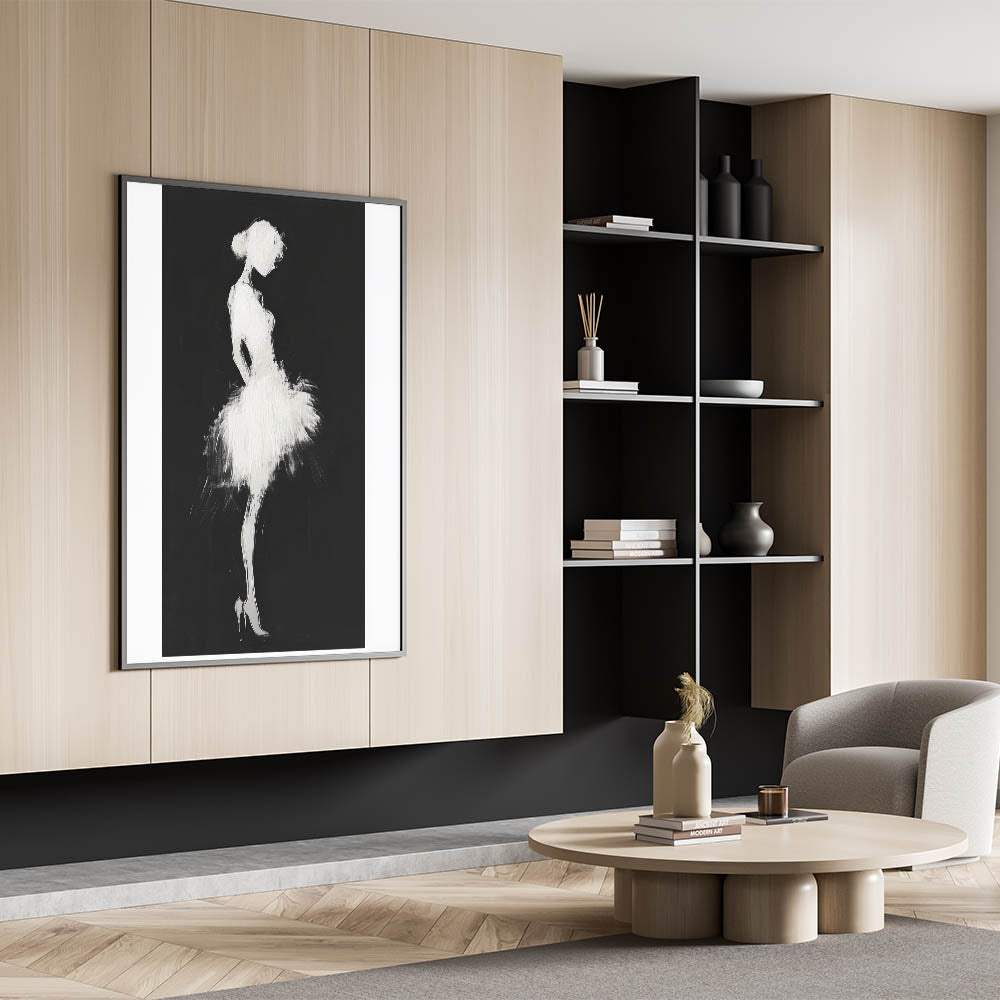 Modern Figurative Canvas Art - Elegant Black and White Ballerina Design