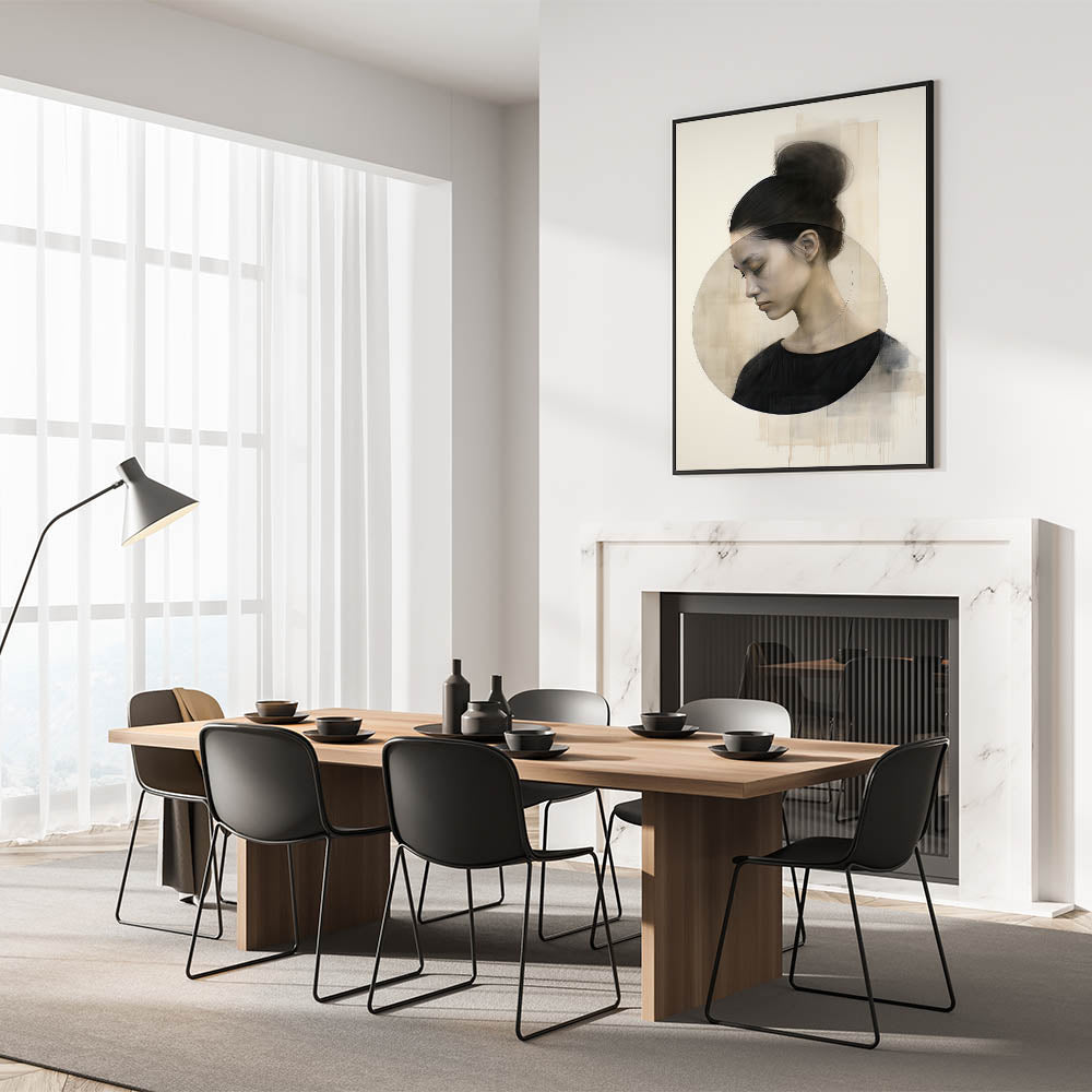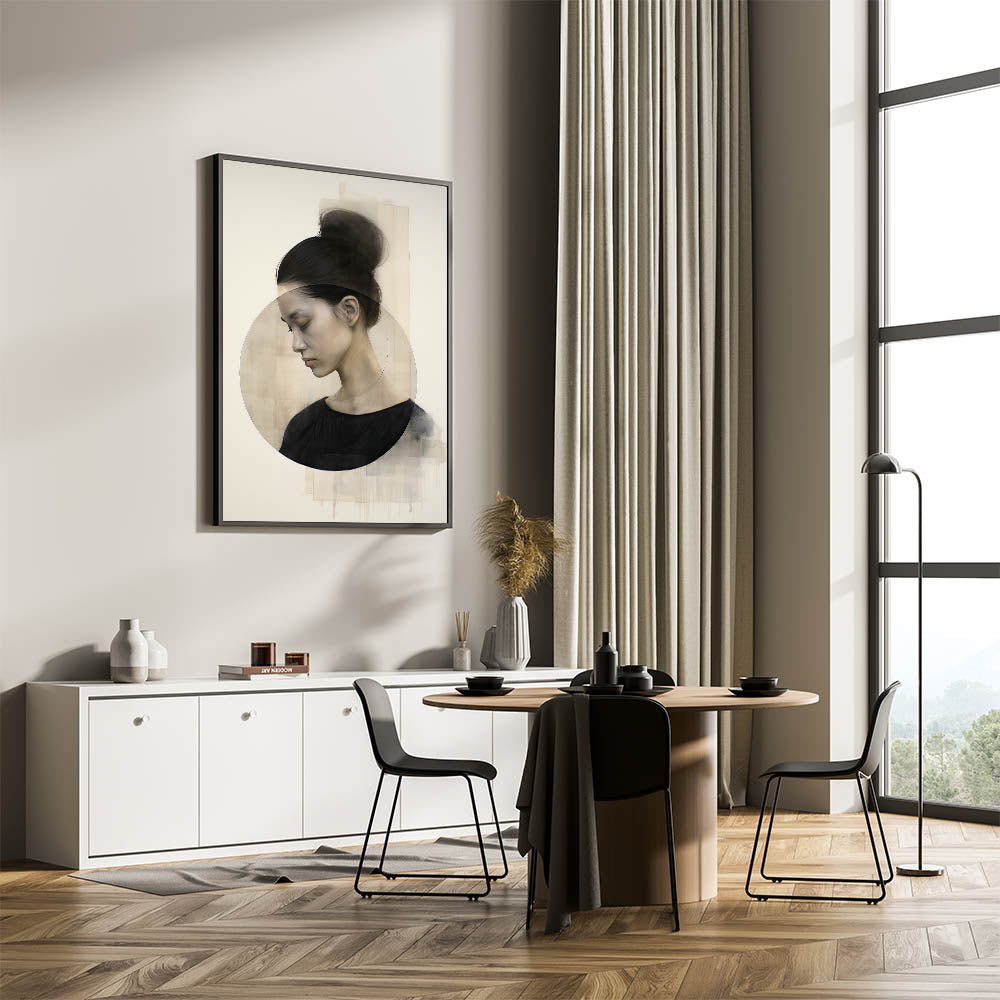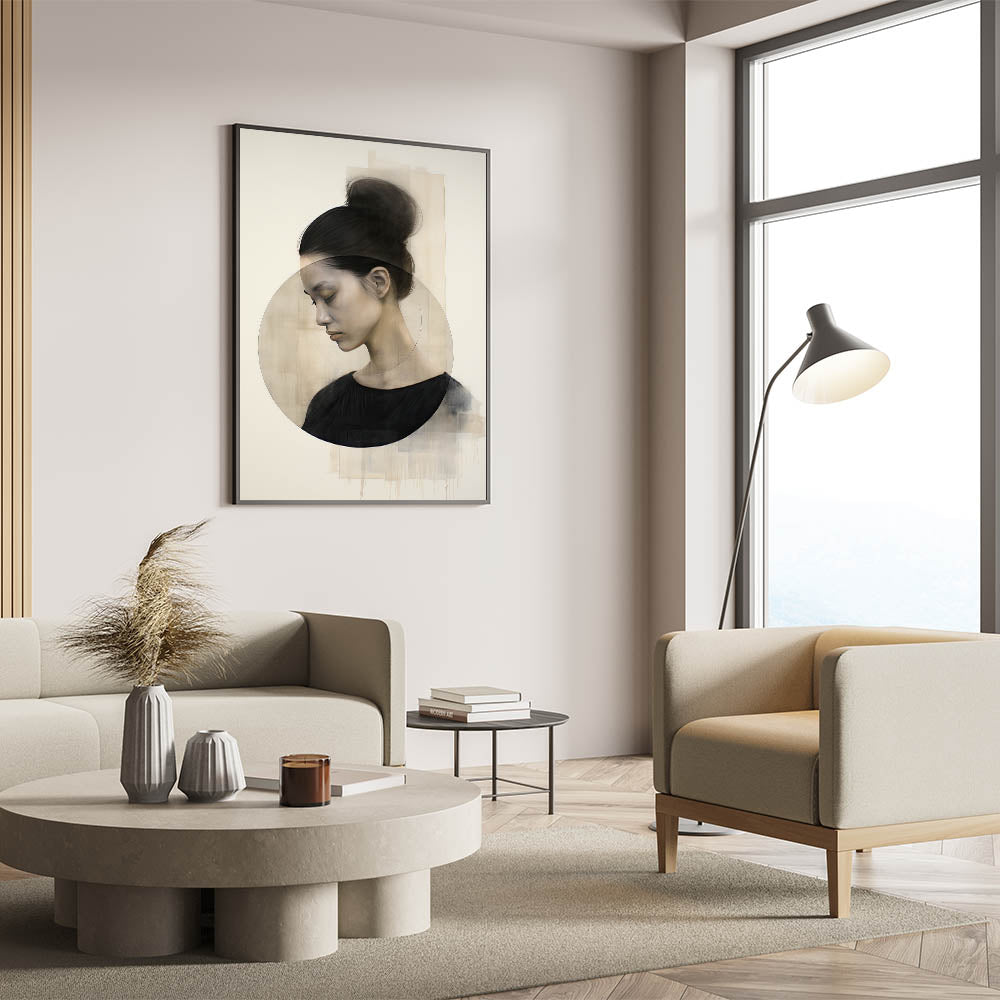 - Elegant and sophisticated minimalist portrait, perfect for contemporary spaces.