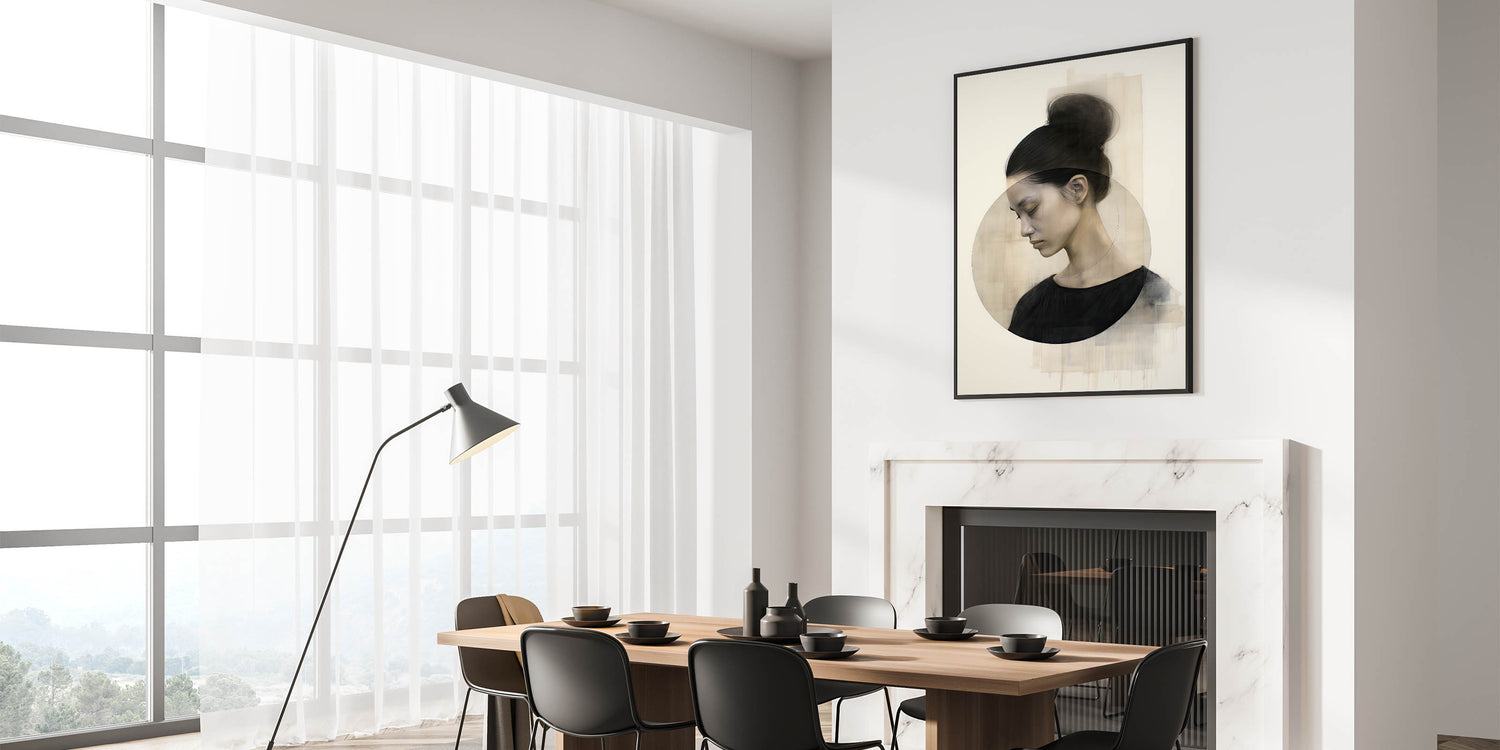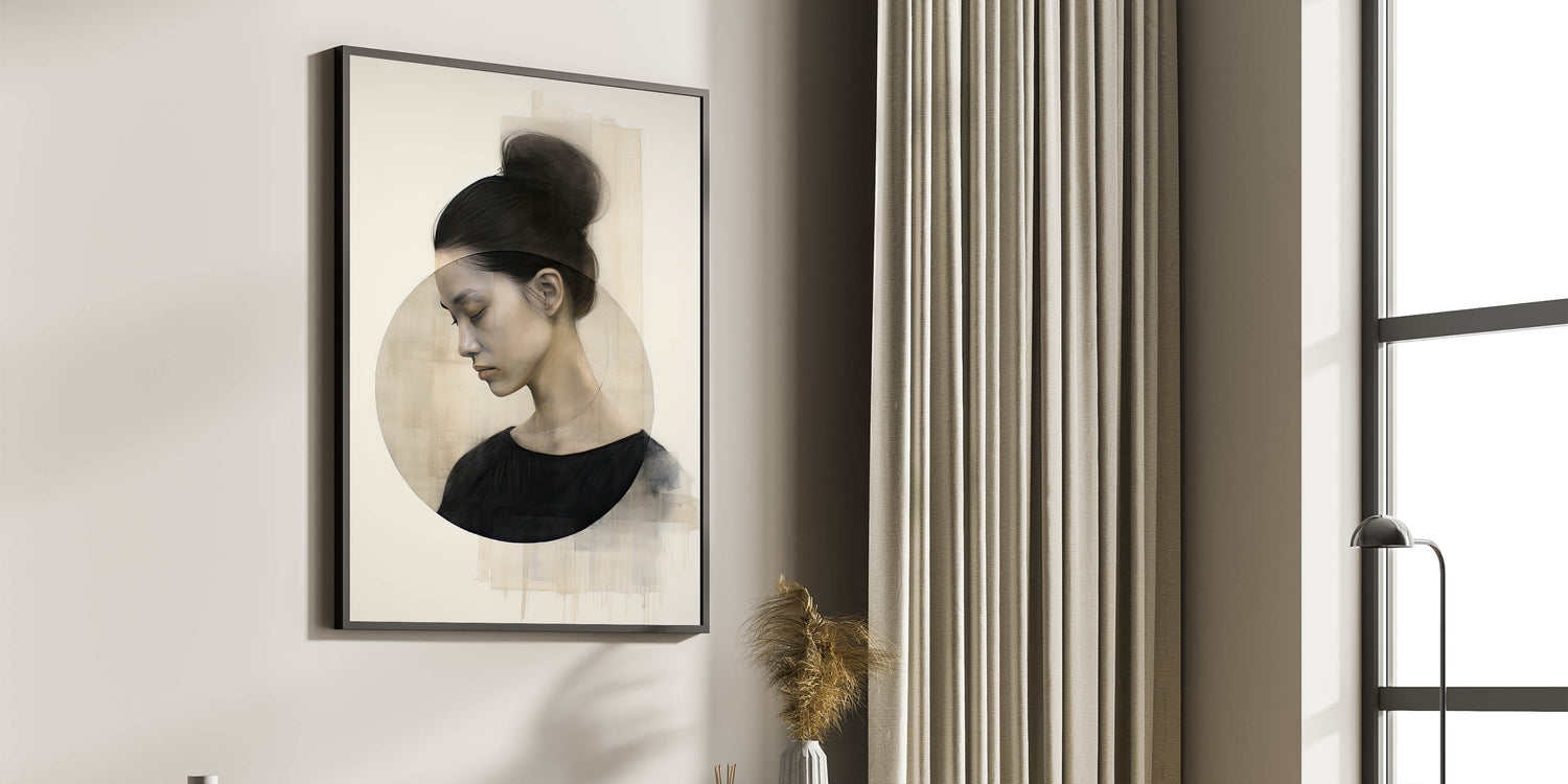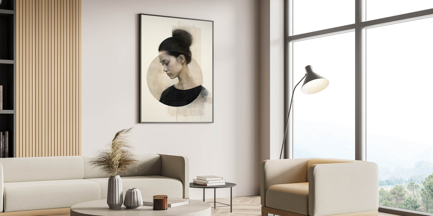 - Elegant and sophisticated minimalist portrait, perfect for contemporary spaces.