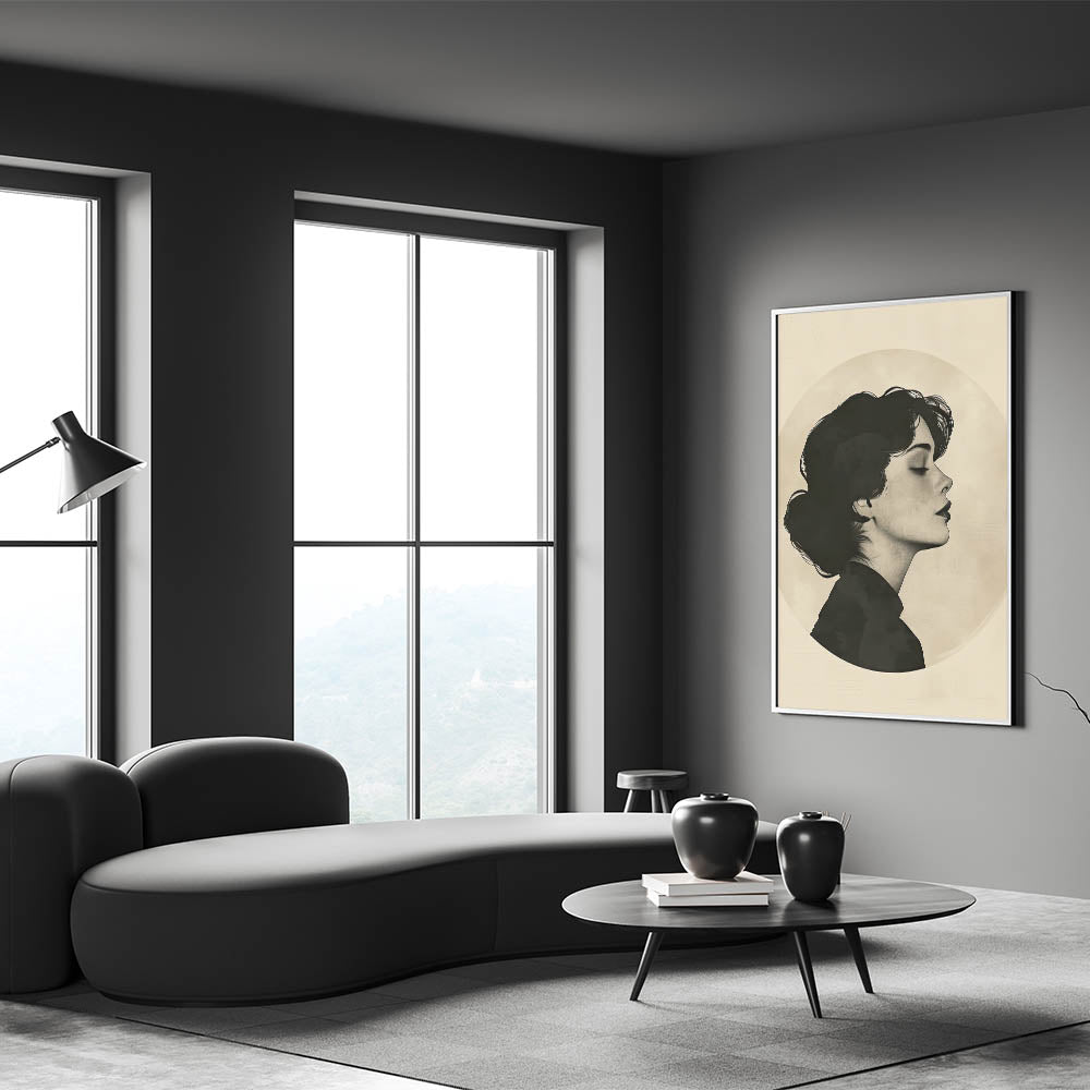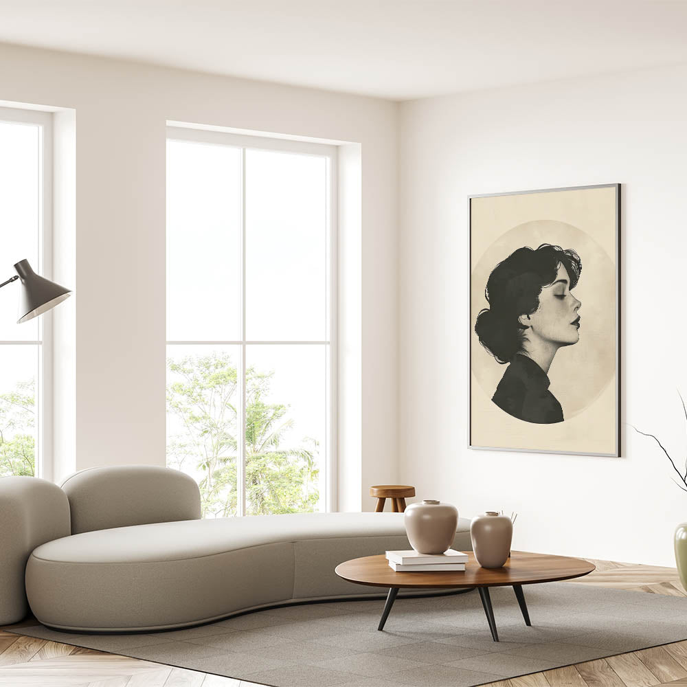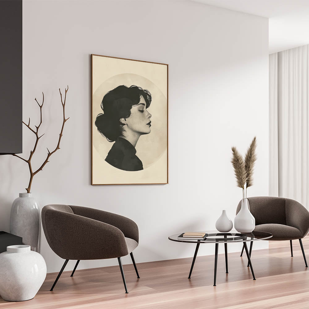 Elevate your space with this stunning modern minimalist portrait art print. Featuring a serene side profile in elegant black and beige tones, this piece exudes timeless sophistication and quiet introspection. The minimalist design focuses on clean lines and soft contrasts, making it perfect for any contemporary or minimalist decor style.
