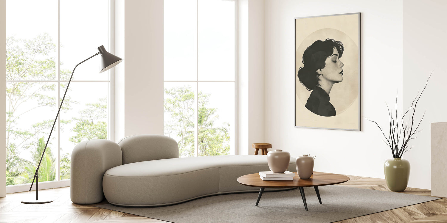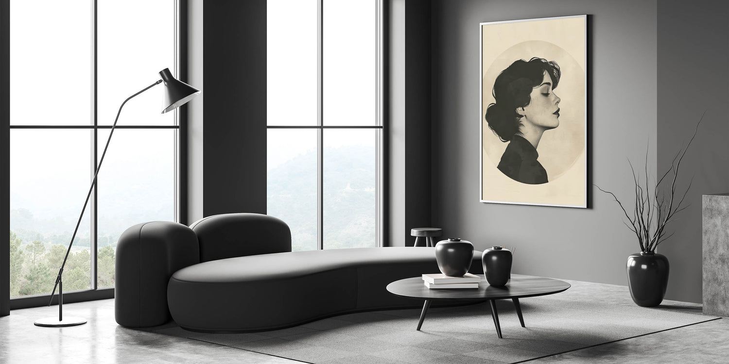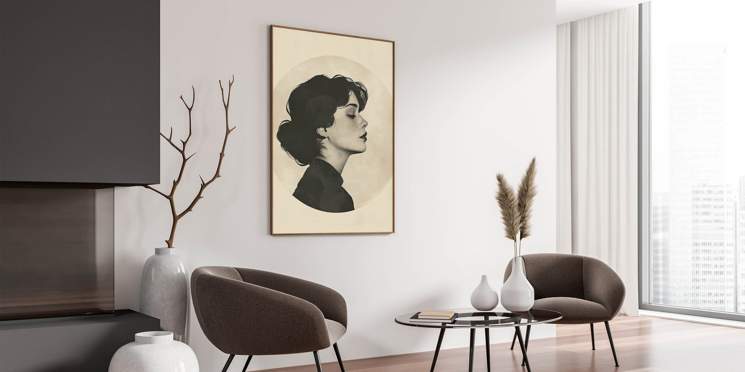 Elevate your space with this stunning modern minimalist portrait art print. Featuring a serene side profile in elegant black and beige tones, this piece exudes timeless sophistication and quiet introspection. The minimalist design focuses on clean lines and soft contrasts, making it perfect for any contemporary or minimalist decor style.