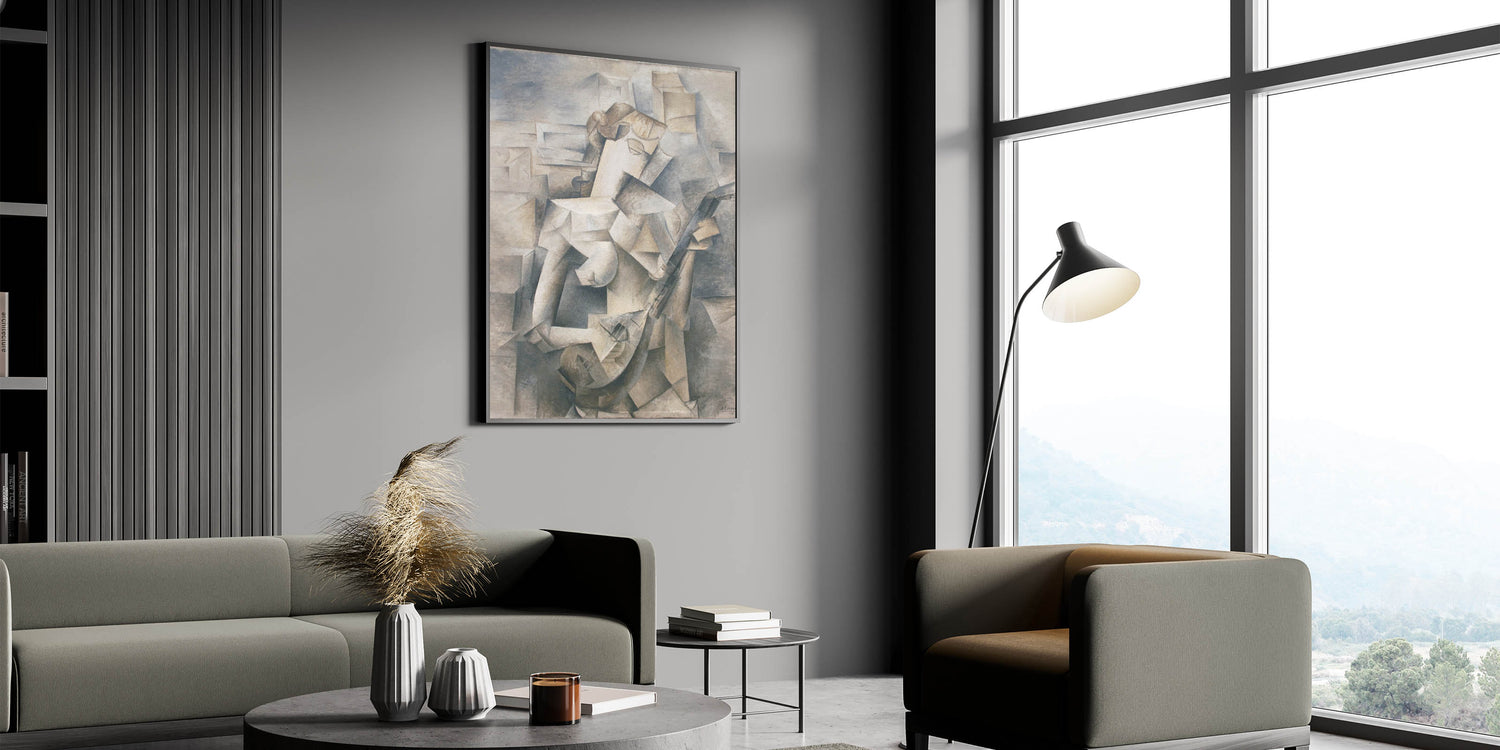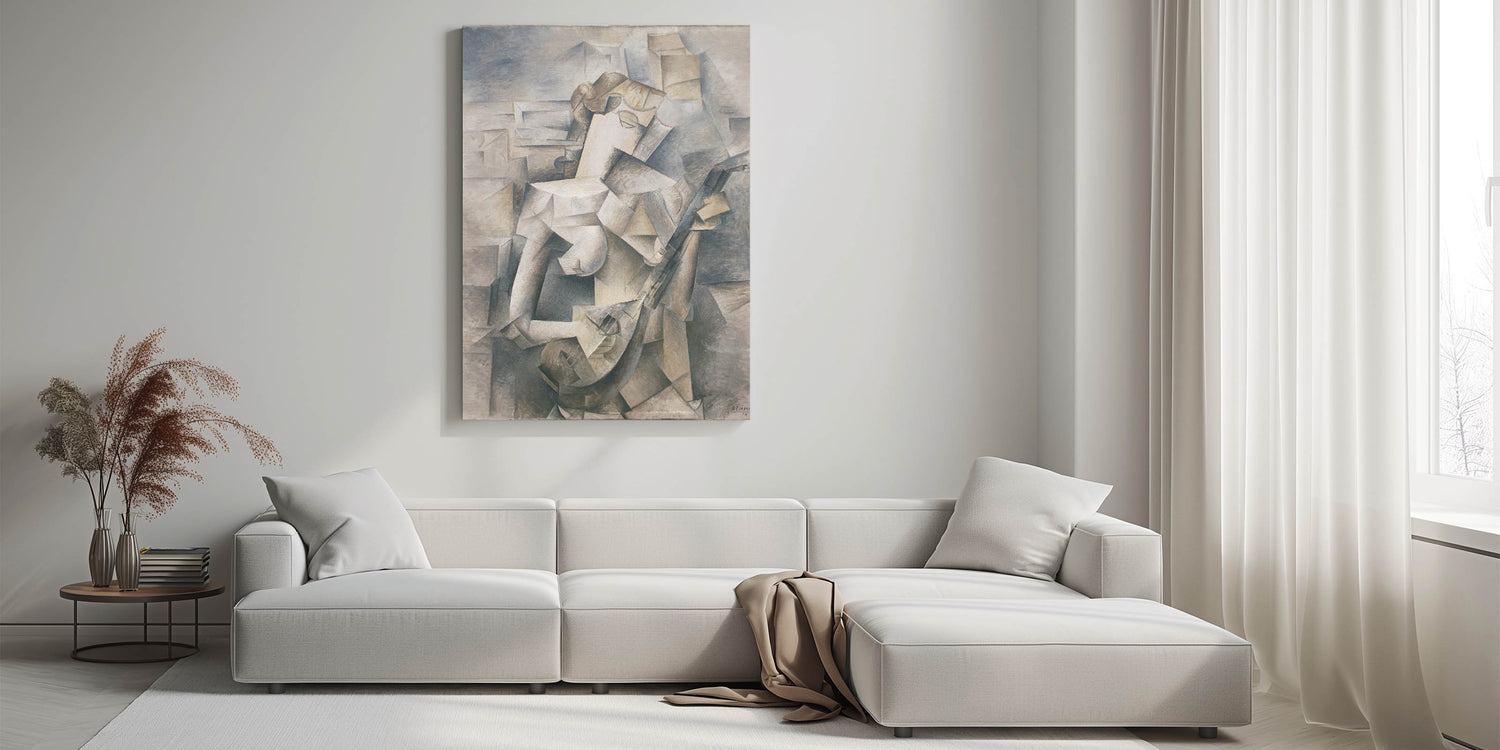 Enhance your space with this abstract cubist wall art, designed to inspire thought and conversation. Perfect for adding a subtle yet impactful statement to any room, this piece is sure to captivate and intrigue. Order now to bring the intellectual beauty of abstract art into your home or office.