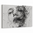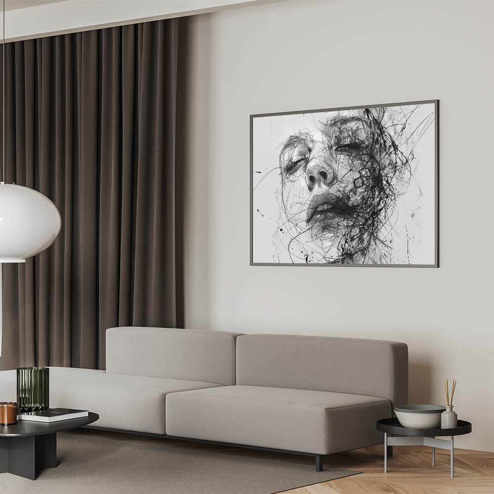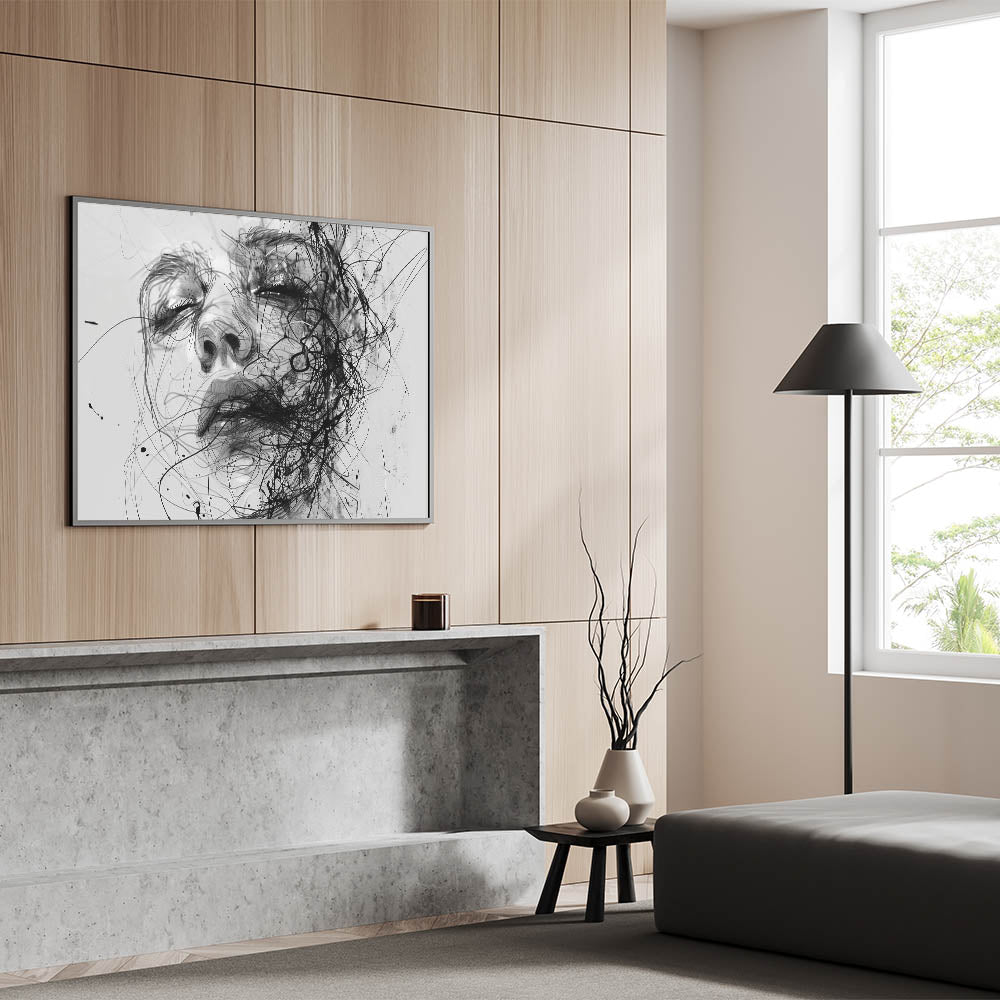 Monochrome Figurative Abstract Wall Art - Expressive Face in Chaos