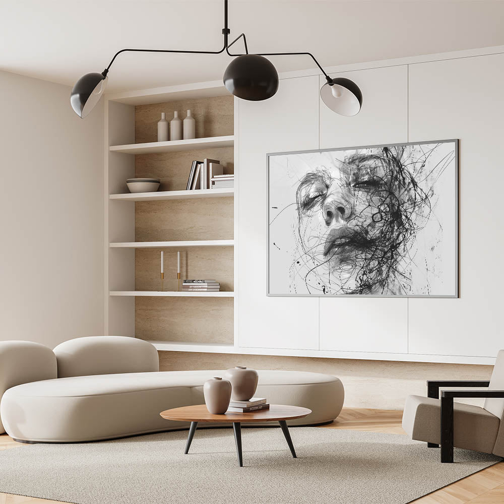 - High-quality materials: Available in stretched canvas, framed canvas, acrylic glass, framed acrylic glass, framed print, rolled canvas, and rolled print.
