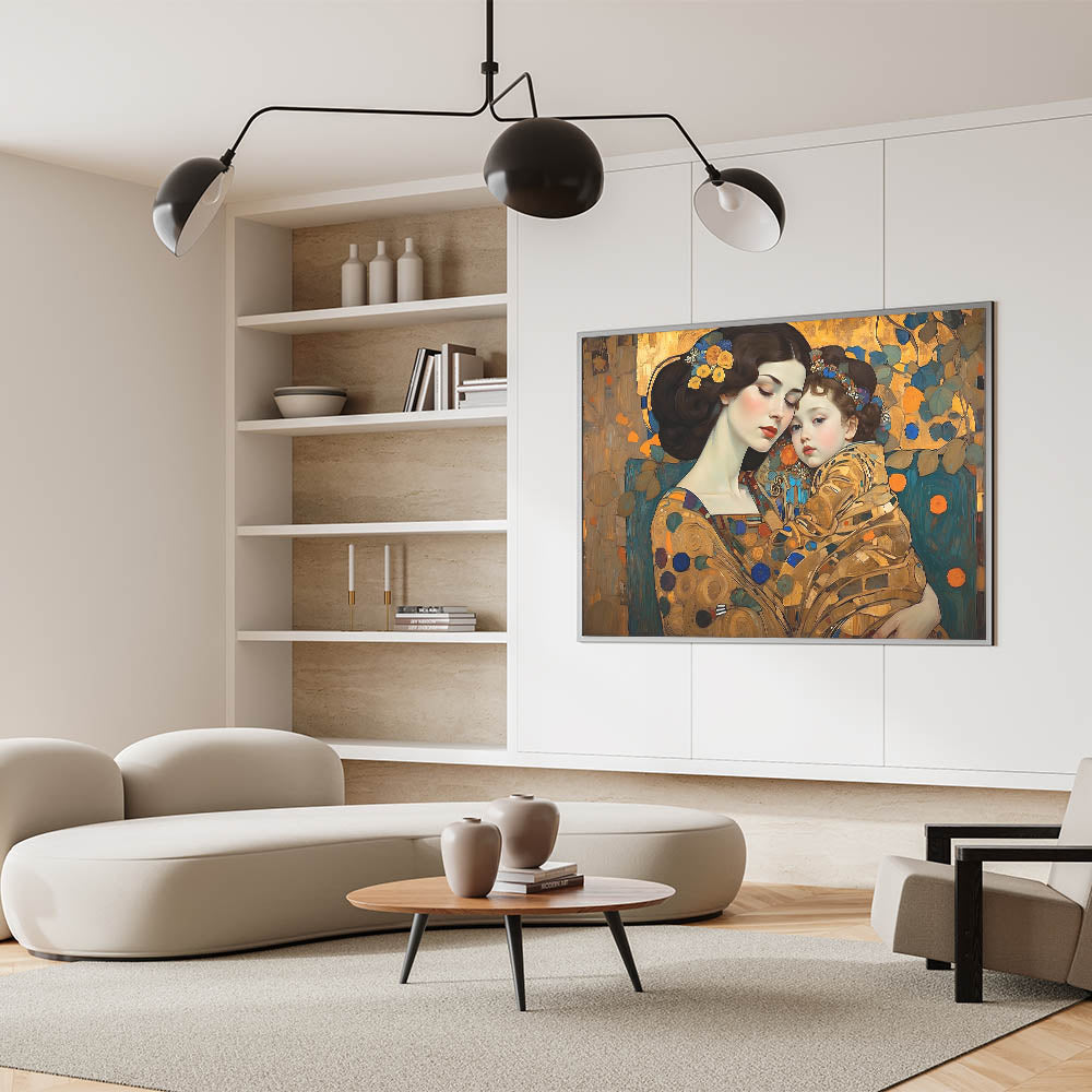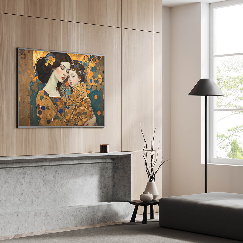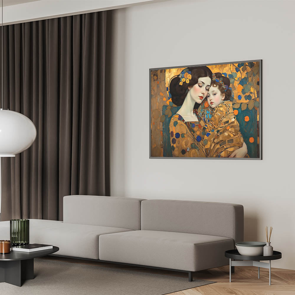 Ideal for those who appreciate fine art with an emotional connection, this mother and child portrait serves as a heartwarming addition to any room. Its warm tones and intricate patterns make it an inviting centerpiece, celebrating the beauty of family and love.