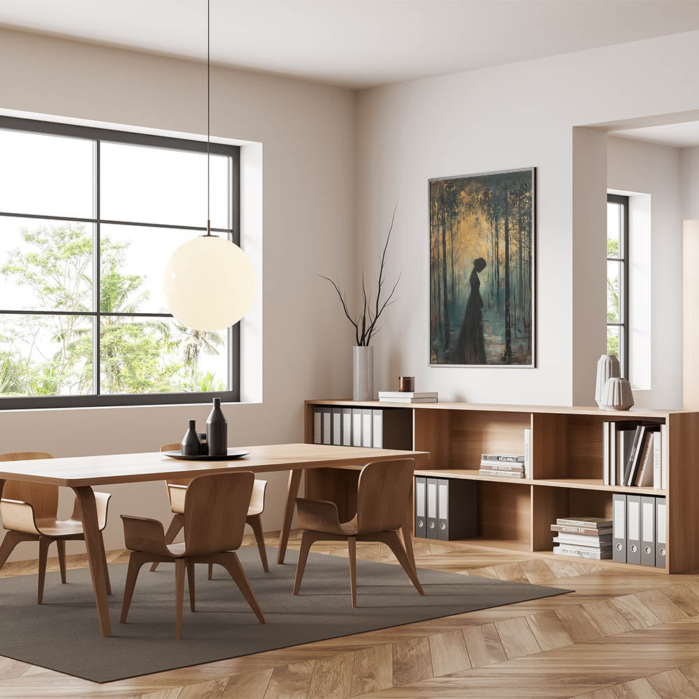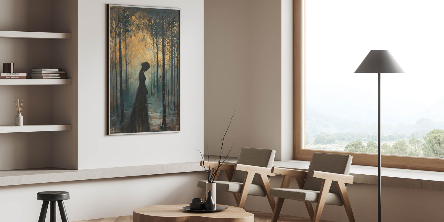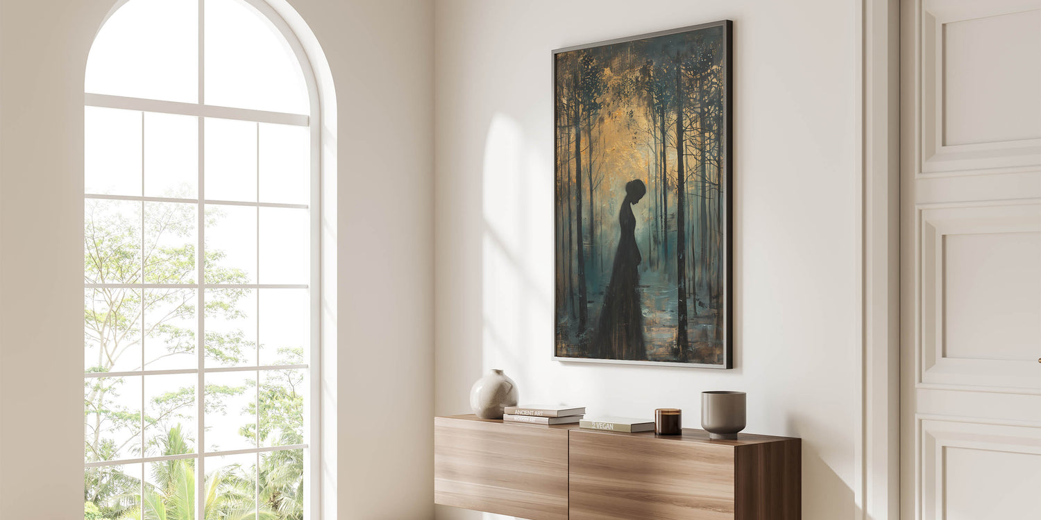 For art lovers who appreciate pieces that evoke emotion and mystery, this mystical forest silhouette art serves as a beautiful focal point in any room. Its dark tones and gentle highlights create a soothing yet powerful visual, inviting viewers into a world of quiet introspection.