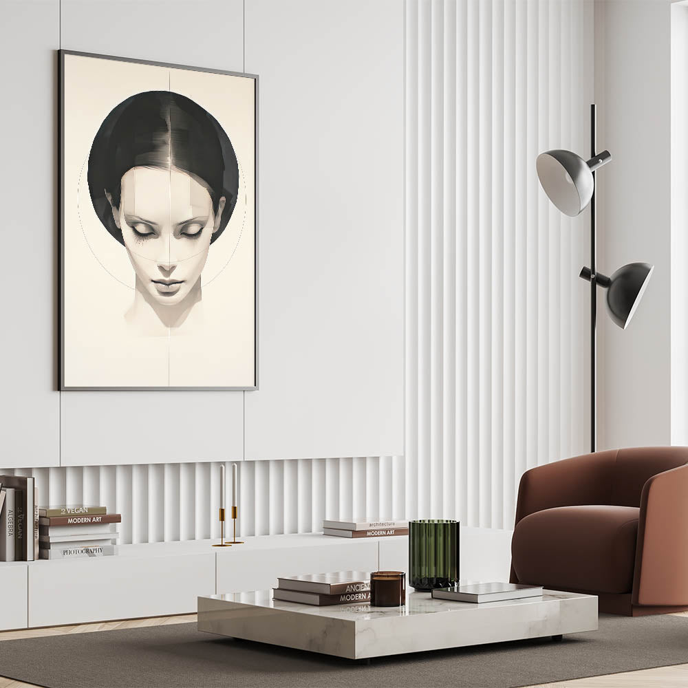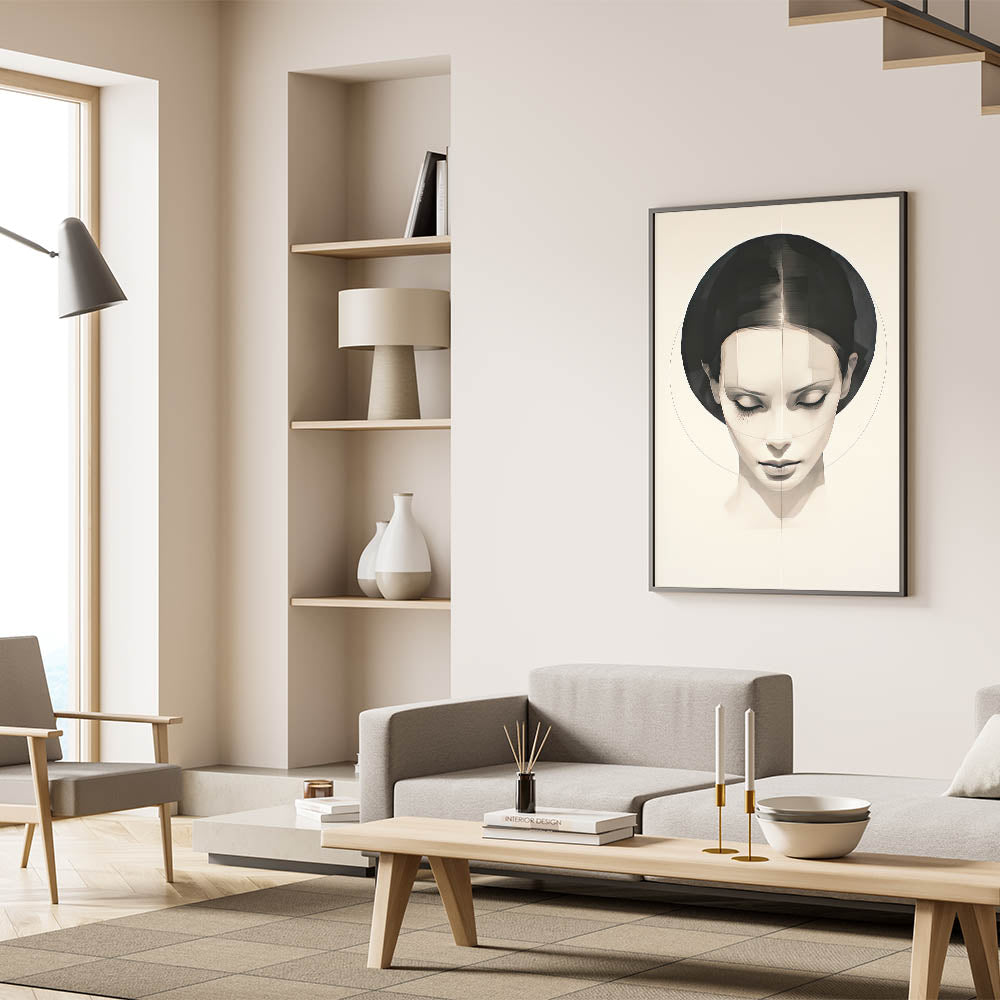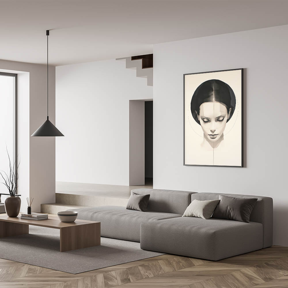 Ideal for living rooms, bedrooms, or workspaces, this elegant minimalist portrait piece adds a touch of sophistication to any setting. Elevate your decor with art that combines simplicity and depth in a truly unique composition.